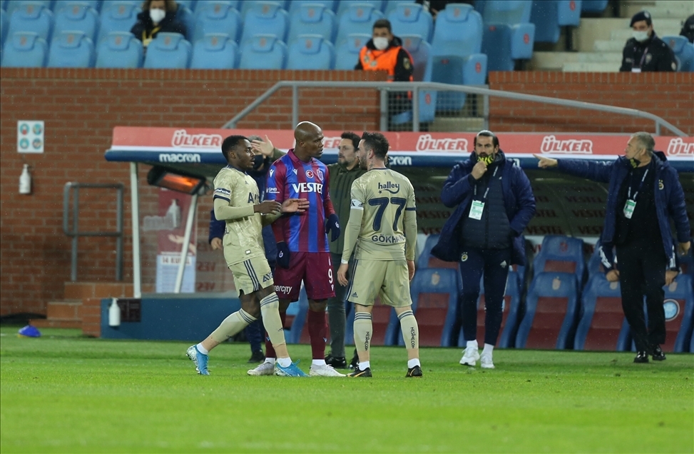 Süper Lig’in 27. haftasında Trabzonspor ile Fenerbahçe karşılaştı. Bir pozisyonda Trabzonsporlu futbolcu Nwakaeme (sol 2) ile Gökhan Gönül arasında kısa süreli tartışma yaşandı. ( Hakan Burak Altunöz - Anadolu Ajansı )Hakan Burak Altunöz