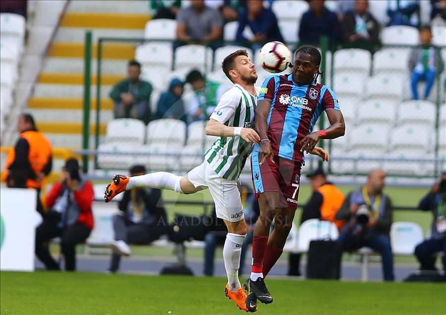Atiker Konyaspor, Spor Toto Süper Lig'in 32. haftasında, Konya Büyükşehir Belediyesi Stadı’nda, Trabzonspor ile karşılaştı. Bir pozisyonda Konyasporlu Miosevic (solda) ile Trabzonsporlu Antony Nwakaemne (sağda) mücadele etti. ( Abdullah Coşkun - Anadolu Ajansı )Abdullah Coşkun