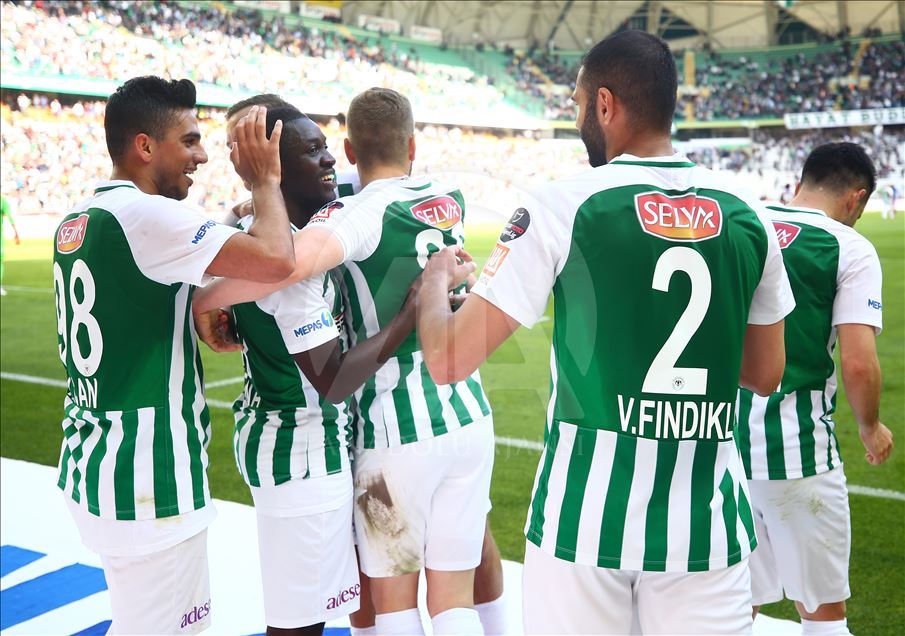 Atiker Konyaspor, Spor Toto Süper Lig'in 32. haftasında, Konya Büyükşehir Belediyesi Stadı’nda, Trabzonspor ile karşılaştı. Takımını 2-1 öne geçiren golü atan Konyasporlu Fofana (sağ 4) sevincini takım arkadaşlarıyla paylaştı. ( Abdullah Coşkun - Anadolu Ajansı )Abdullah Coşkun