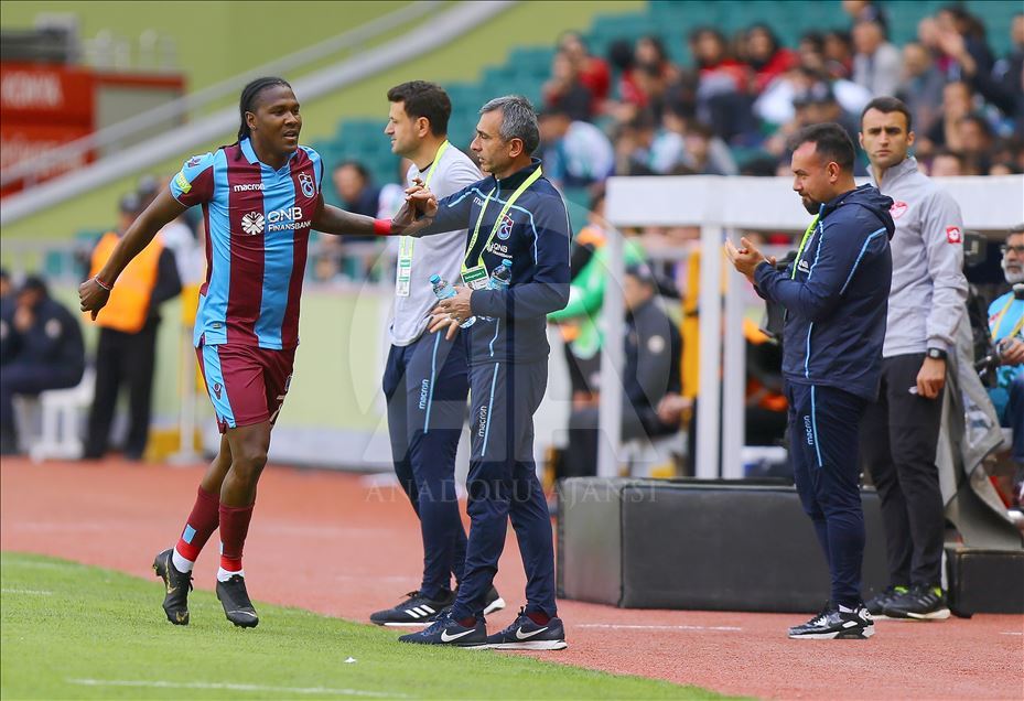 Atiker Konyaspor, Spor Toto Süper Lig'in 32. haftasında, Konya Büyükşehir Belediyesi Stadı’nda, Trabzonspor ile karşılaştı. Trabzonsporlu Rodallega Martinez, (solda) takımını 1-0 öne geçiren golünün ardından yedek kulübesine giderek sevincini paylaştı. ( Abdullah Coşkun - Anadolu Ajansı )Abdullah Coşkun