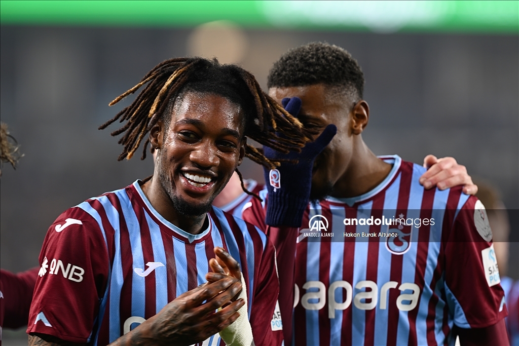 Trendyol Süper Lig’in 19. haftasında Trabzonspor ile Onvo Antalyaspor, Papara Park’ta karşılaştı. Trabzonsporlu futbolcular Muhammed Cham (solda) ile Simon Banza gol sevinci yaşadı. ( Hakan Burak Altunöz - Anadolu Ajansı )Hakan Burak Altunöz