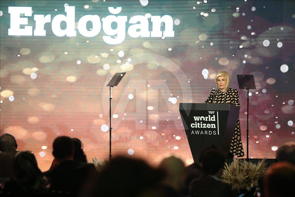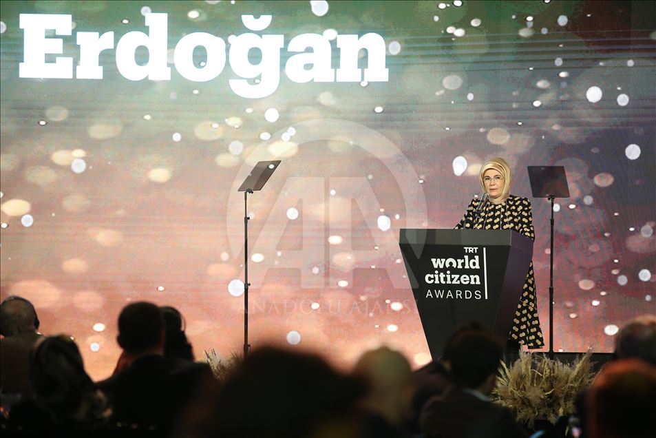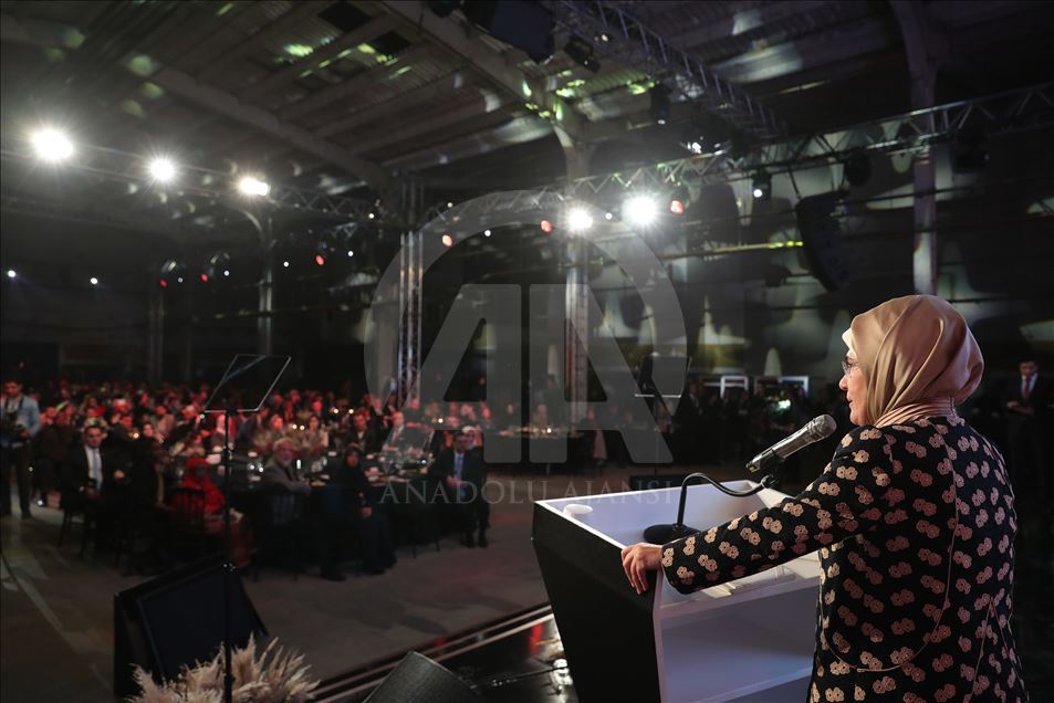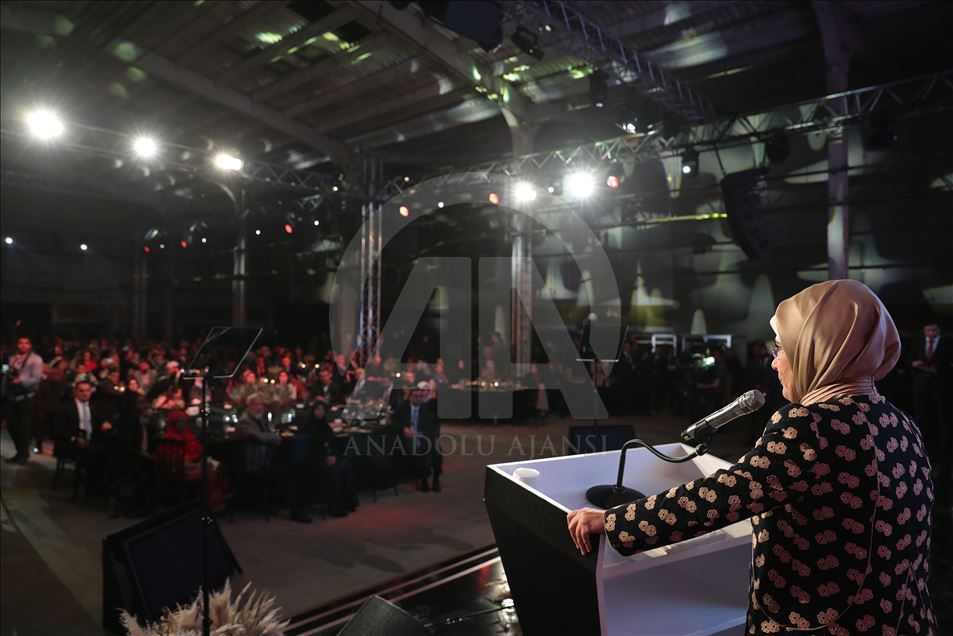 Cumhurbaşkanı Recep Tayyip Erdoğan'ın eşi Emine Erdoğan, Hasköy İplik Fabrikası'nda gerçekleştirilen TRT World Citizen Ödül Törenine katılarak konuşma yaptı. ( Mustafa Kamacı - Anadolu Ajansı )Mustafa Kamacı