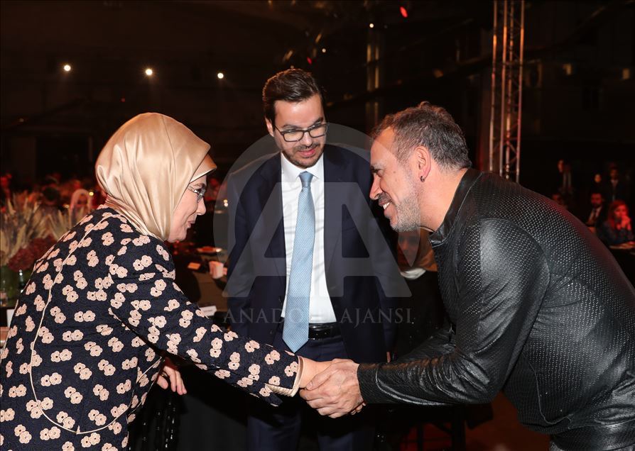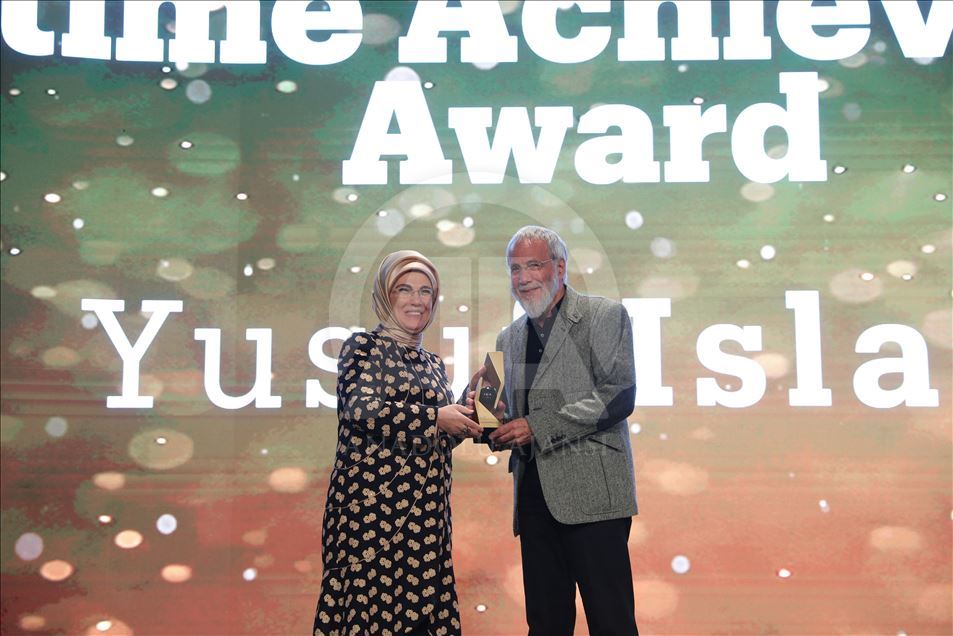 Cumhurbaşkanı Recep Tayyip Erdoğan'ın eşi Emine Erdoğan (sağda), Hasköy İplik Fabrikası'nda gerçekleştirilen TRT World Citizen Ödül Törenine katıldı. Törene sanatçı Yusuf İslam (Cat Stevens) (sol 2) ve Haluk Levent de (solda) katıldı. ( Mustafa Kamacı - Anadolu Ajansı )Mustafa Kamacı