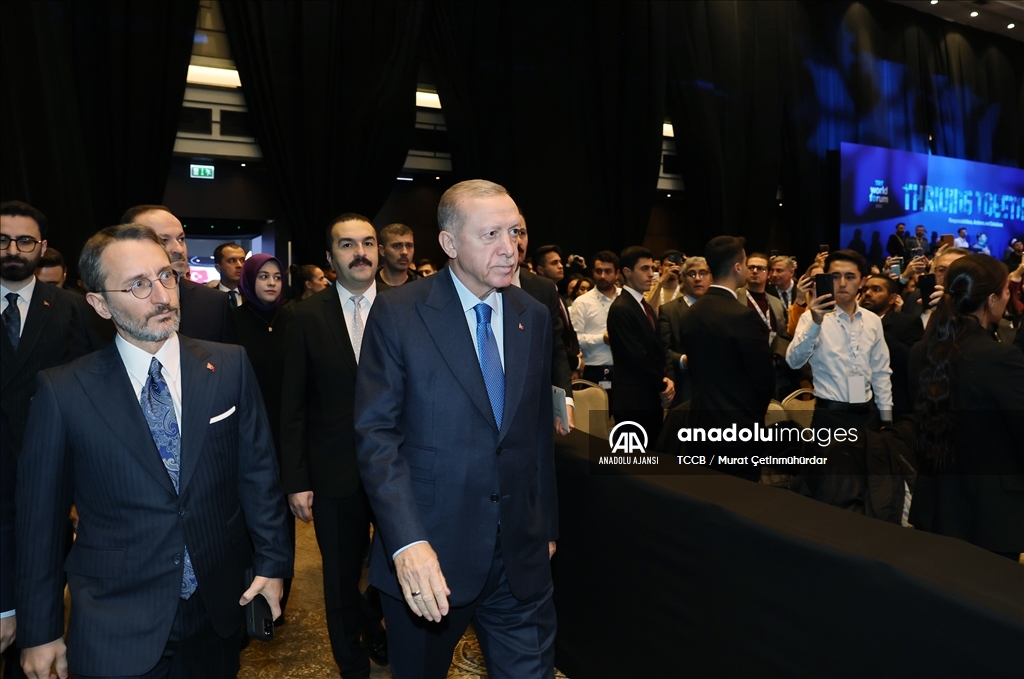Cumhurbaşkanı Recep Tayyip Erdoğan, "Birlikte Gelişmek: Sorumluluklar, Eylemler ve Çözümler" temasıyla, bu yıl 7'nci kez, akademisyenler, gazeteciler, politikacılar ve sivil toplum kuruluşlarını bir araya getiren "TRT World Forum 2023"un açılışına katıldı. Açılışa Cumhurbaşkanlığı İletişim Başkanı Fahrettin Altun da katıldı. ( TCCB / Murat Çetinmühürdar - Anadolu Ajansı )TCCB / Murat Çetinmühürdar
