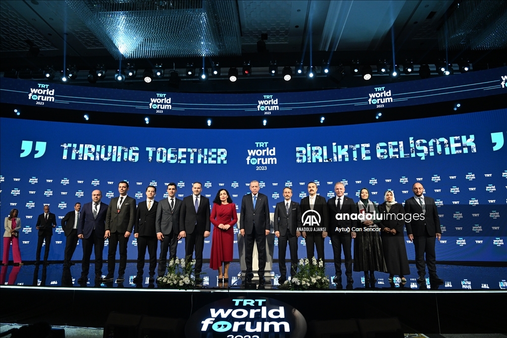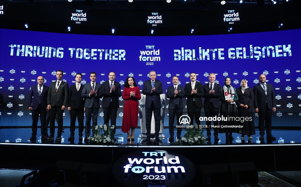 Cumhurbaşkanı Recep Tayyip Erdoğan, 'Birlikte Gelişmek: Sorumluluklar, Eylemler ve Çözümler' temasıyla, bu yıl 7'nci kez, akademisyenler, gazeteciler, politikacılar ve sivil toplum kuruluşlarını bir araya getiren 'TRT World Forum 2023'un açılışına katıldı.