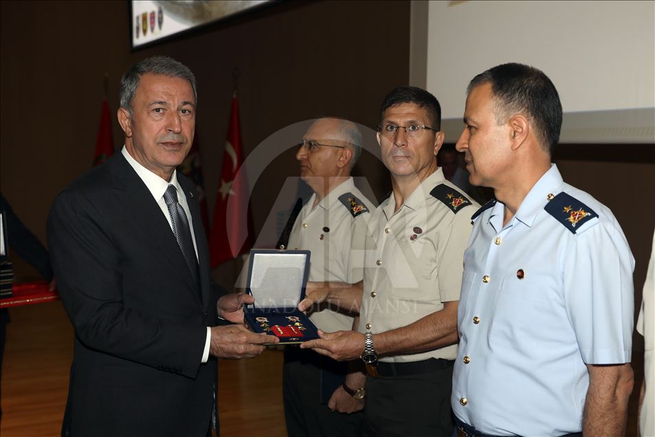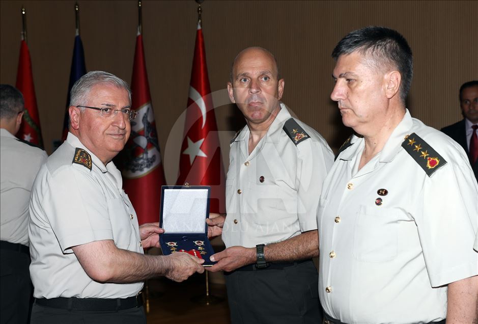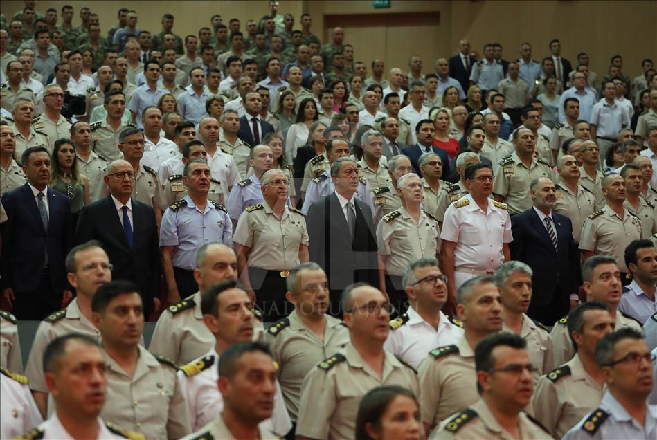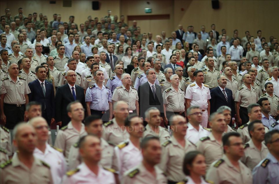 Milli Savunma Bakanı Hulusi Akar, Genelkurmay Başkanı Orgeneral Yaşar Güler, Kara Kuvvetleri Komutanı Orgeneral Ümit Dündar, Deniz Kuvvetleri Komutanı Oramiral Adnan Özbal ve Hava Kuvvetleri Komutanı Orgeneral Hasan Küçükakyüz'ün yanı sıra Bakan Yardımcıları'nın da katıldığı Türk Silahlı Kuvvetlerinde bir üst rütbeye terfi eden personelin rütbe işaretlerinin verildiği törene katıldı. ( Arif Akdoğan - Anadolu Ajansı )Arif Akdoğan