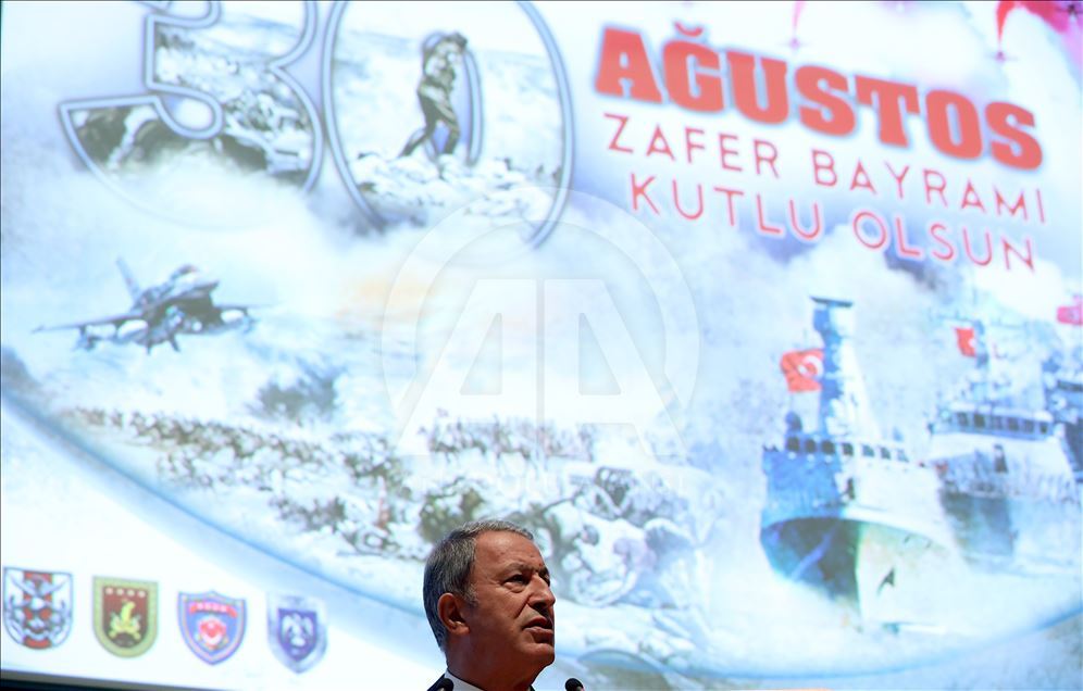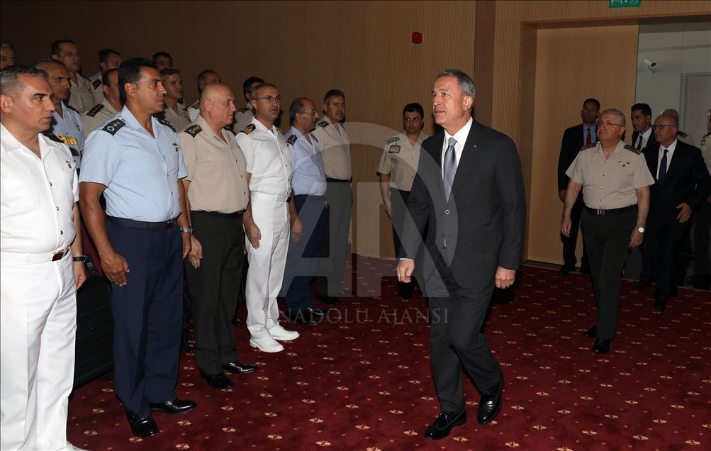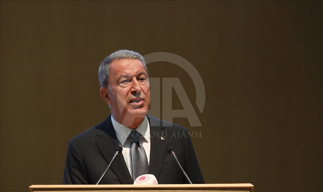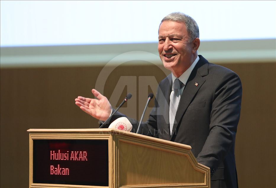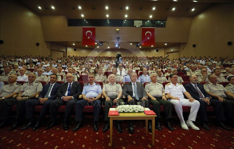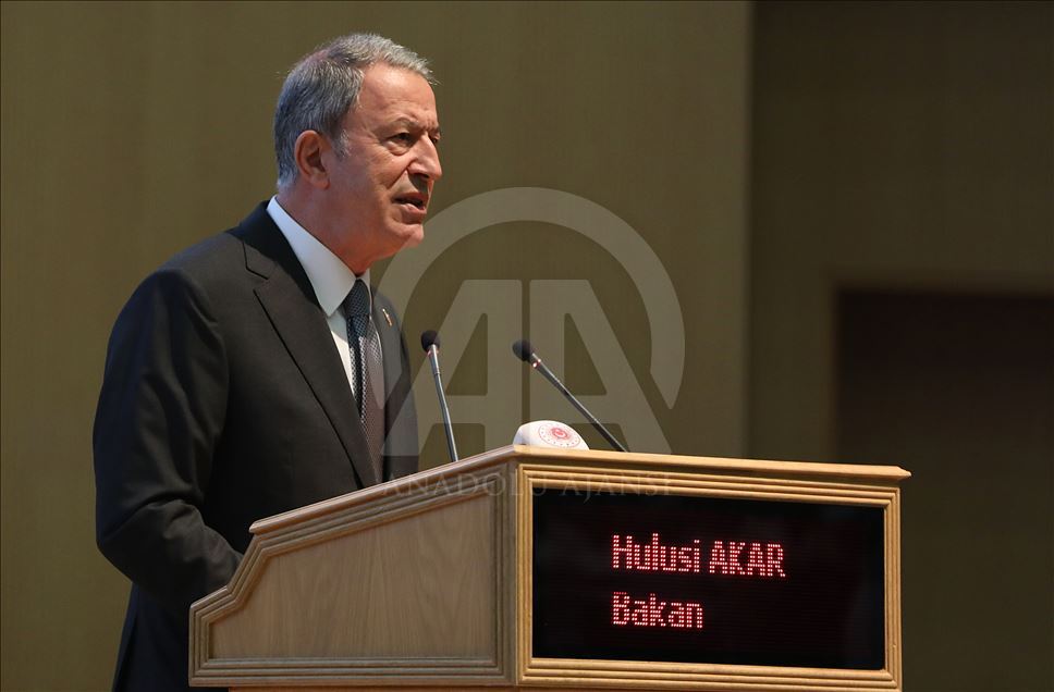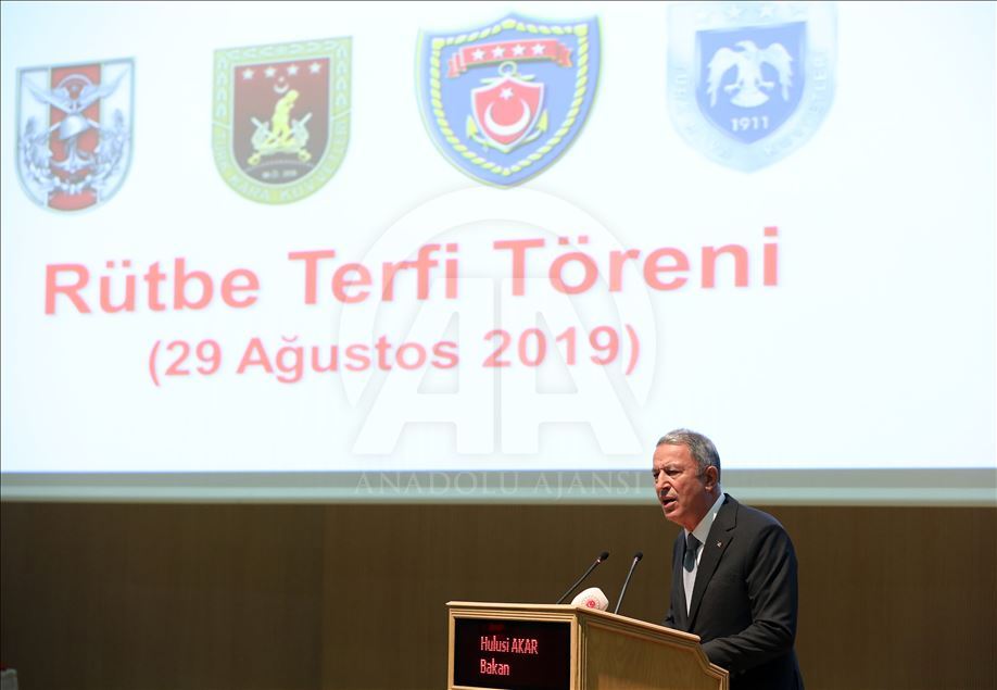 Milli Savunma Bakanı Hulusi Akar, Türk Silahlı Kuvvetlerinde bir üst rütbeye terfi eden personelin rütbe işaretlerinin verildiği törende konuştu. ( Arif Akdoğan - Anadolu Ajansı )Arif Akdoğan