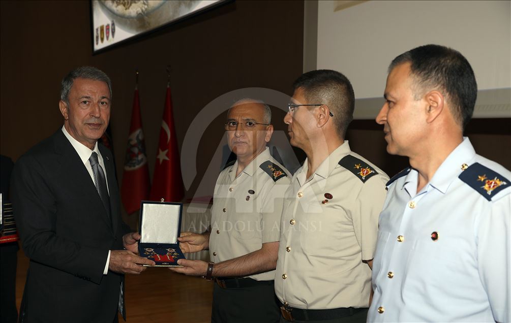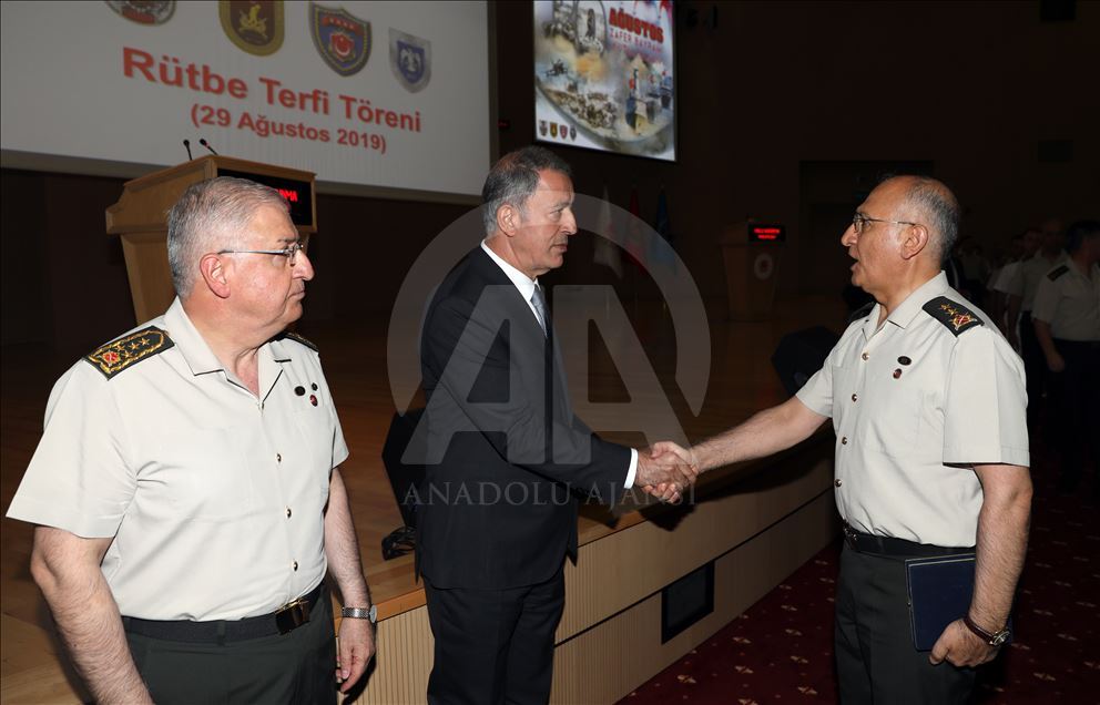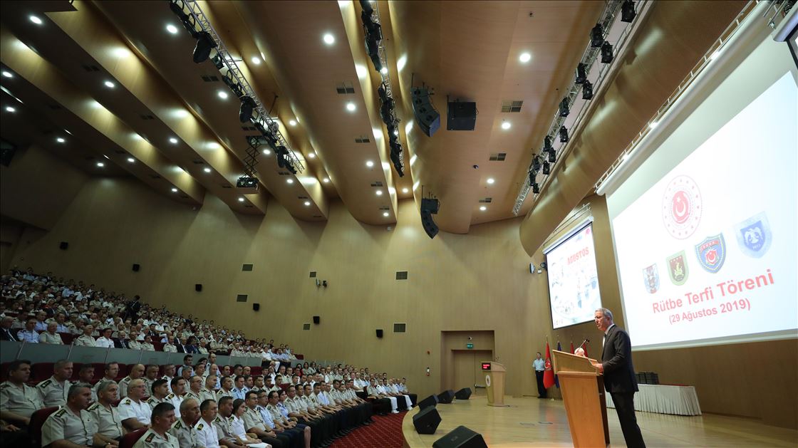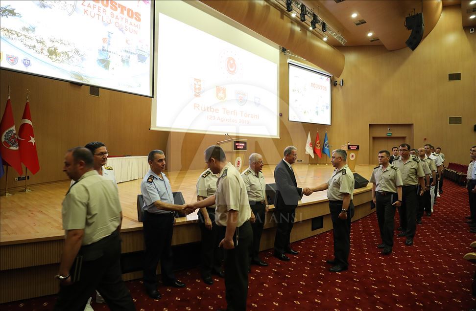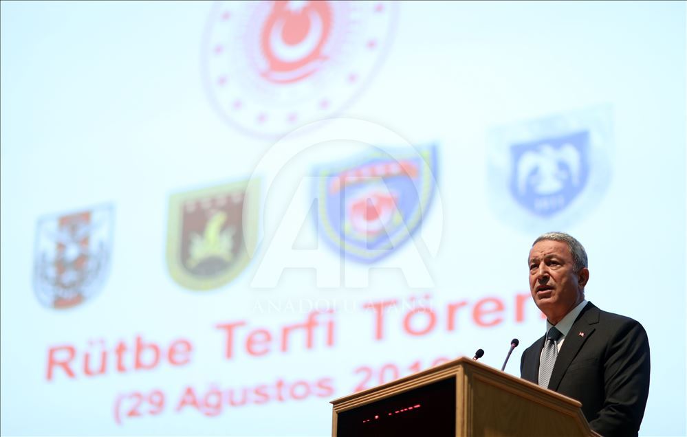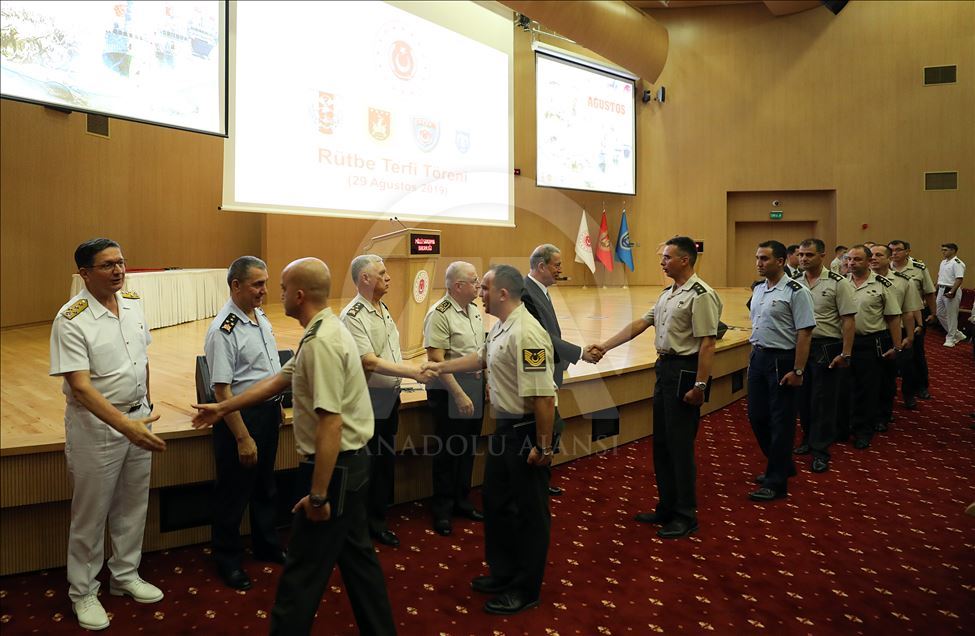 Milli Savunma Bakanı Hulusi Akar, Türk Silahlı Kuvvetlerinde bir üst rütbeye terfi eden personelin rütbe işaretlerinin verildiği törene katıldı. ( Arif Akdoğan - Anadolu Ajansı )Arif Akdoğan