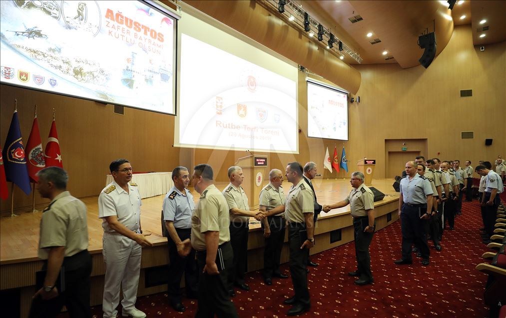 Milli Savunma Bakanı Hulusi Akar ve Genelkurmay Başkanı Orgeneral Yaşar Güler, Türk Silahlı Kuvvetlerinde bir üst rütbeye terfi eden personelin rütbe işaretlerinin verildiği törene katıldı. ( Arif Akdoğan - Anadolu Ajansı )Arif Akdoğan