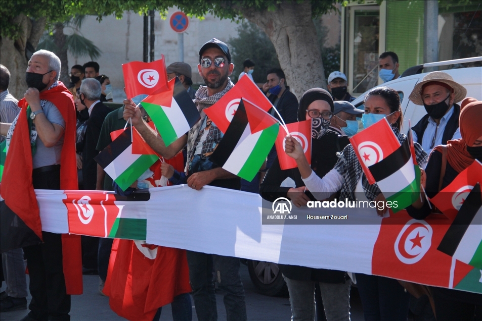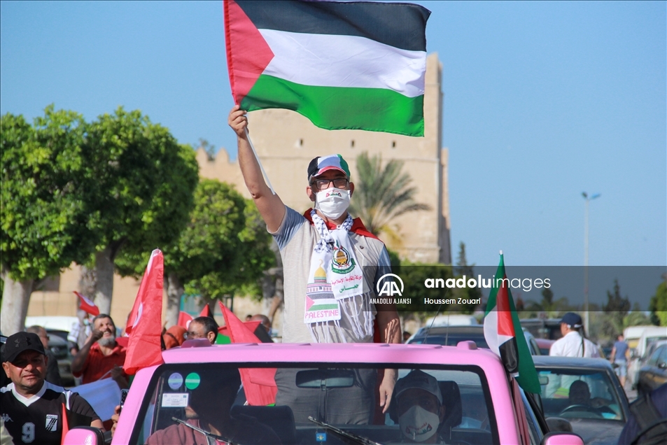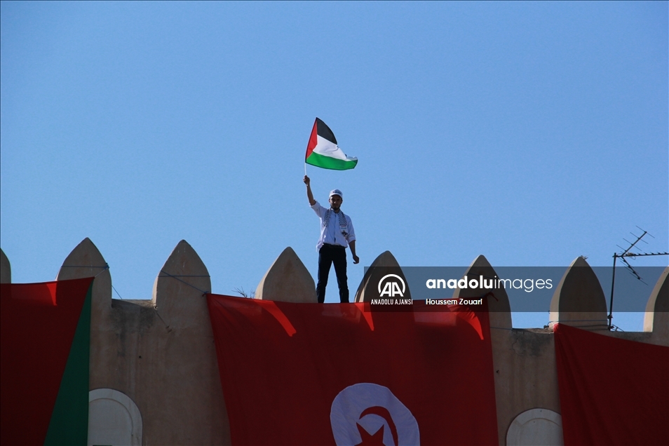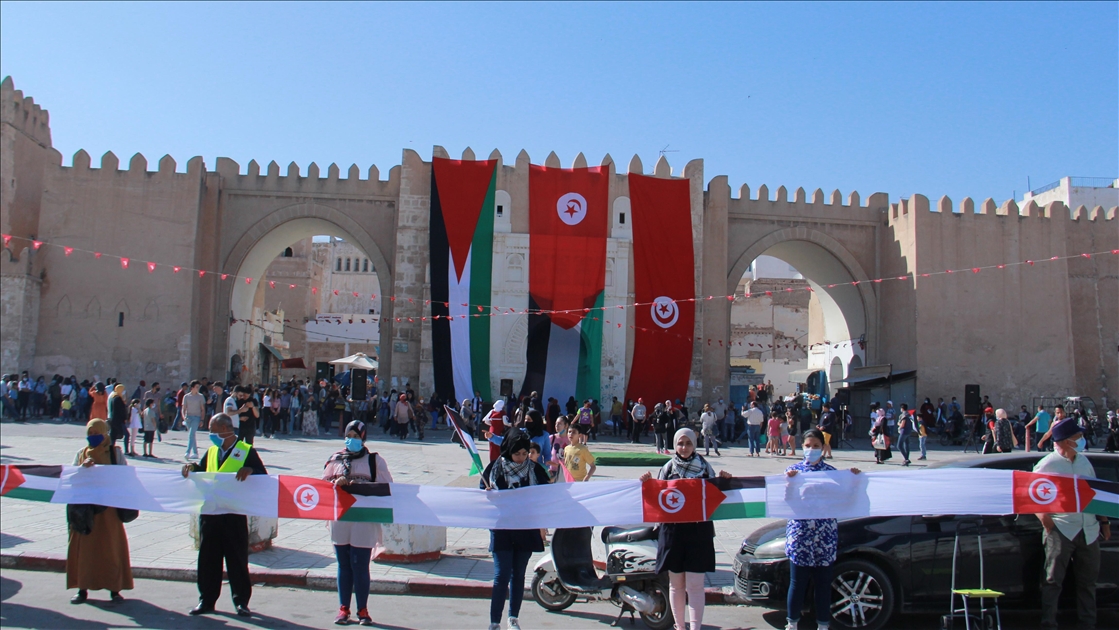 Tunus'un Safakes kentinde yüzlerce kişi, Filistin halkına destek için insan zinciri oluşturdu. Ellerinde Tunus ve Filistin bayrağı taşıyan katılımcılar, antik kent sularının dört tarafına kadar uzandı. ( Houssem Zouari - Anadolu Ajansı )Houssem Zouari