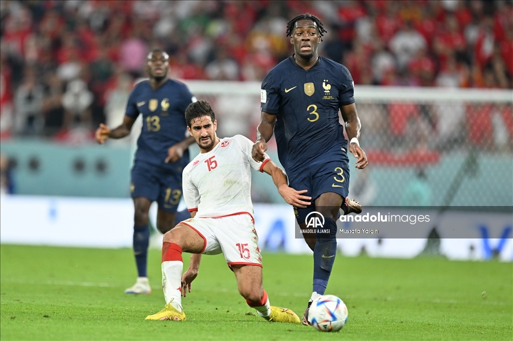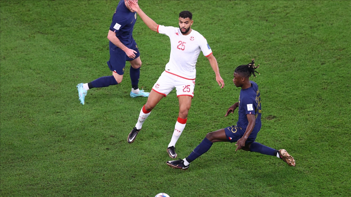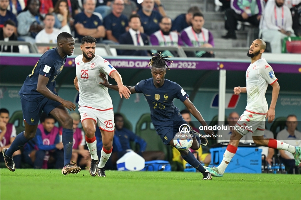Katar'ın ev sahipliğini yaptığı 2022 FIFA Dünya Kupası’nda, D Grubu'nda yer alan Tunus ve Fransa takımları Eğitim Şehri Stadyumu'nda karşılaştı. Bir pozisyonda Tunus takımından Anis Ben Slimane (sol 2) ile Fransız futbolcu Eduardo Camavinga (sağ 2) mücadele etti. ( Mustafa Yalçın - Anadolu Ajansı )Mustafa Yalçın
