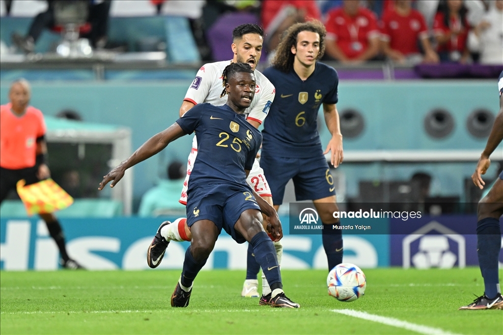 Katar'ın ev sahipliğini yaptığı 2022 FIFA Dünya Kupası’nda, D Grubu'nda yer alan Tunus ve Fransa takımları Eğitim Şehri Stadyumu'nda karşılaştı. Fransız futbolcu Eduardo Camavinga (25) Tunuslu Wajdi Kechrida (21) ile mücadele etti. ( Mustafa Yalçın - Anadolu Ajansı )Mustafa Yalçın
