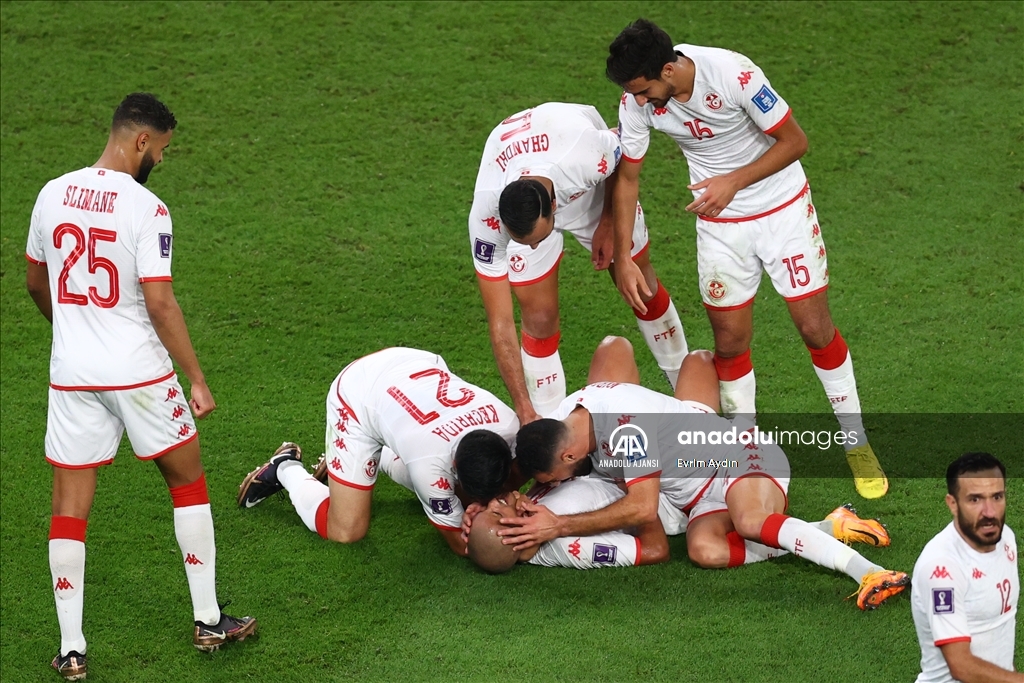 Katar'ın ev sahipliğini yaptığı 2022 FIFA Dünya Kupası’nda, D Grubu'nda yer alan Tunus ve Fransa takımları Eğitim Şehri Stadyumu'nda karşılaştı. Tunus takımı oyuncuları, Wahbi Khazri'nin (yerde) attığı gol sonrası sevinç yaşadı. ( Evrim Aydın - Anadolu Ajansı )Evrim Aydın