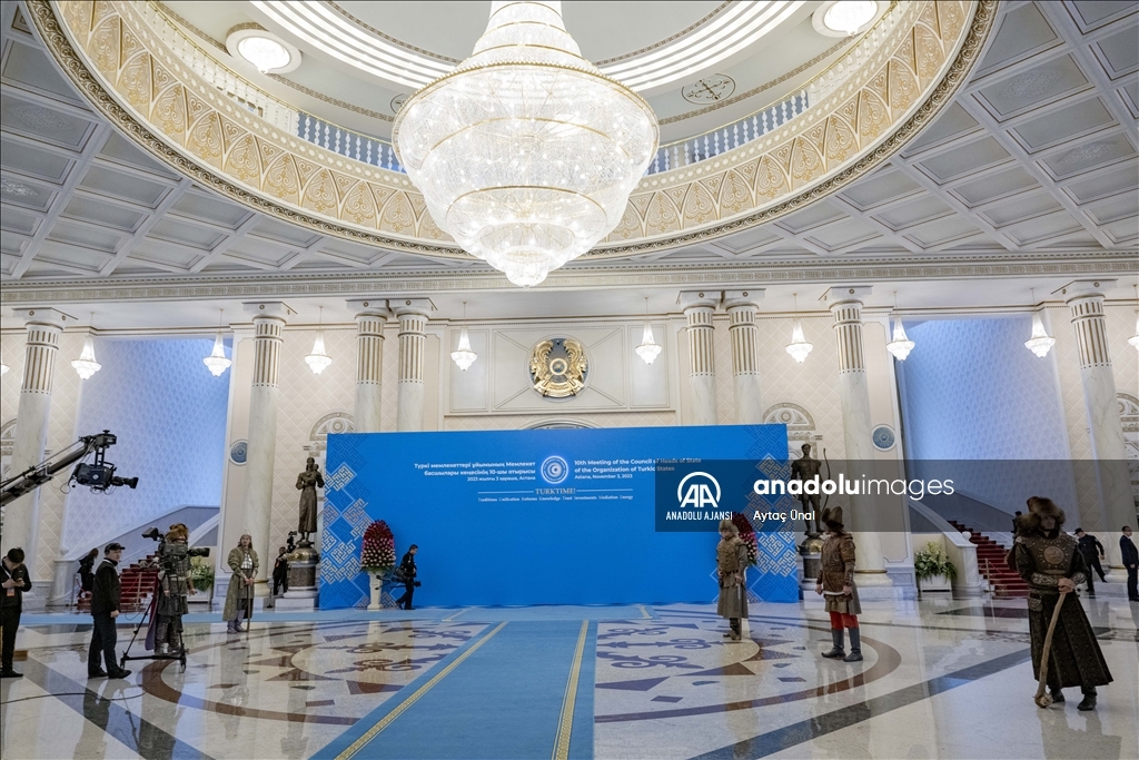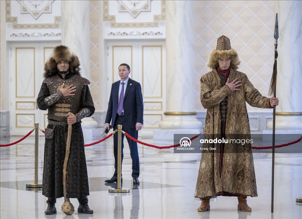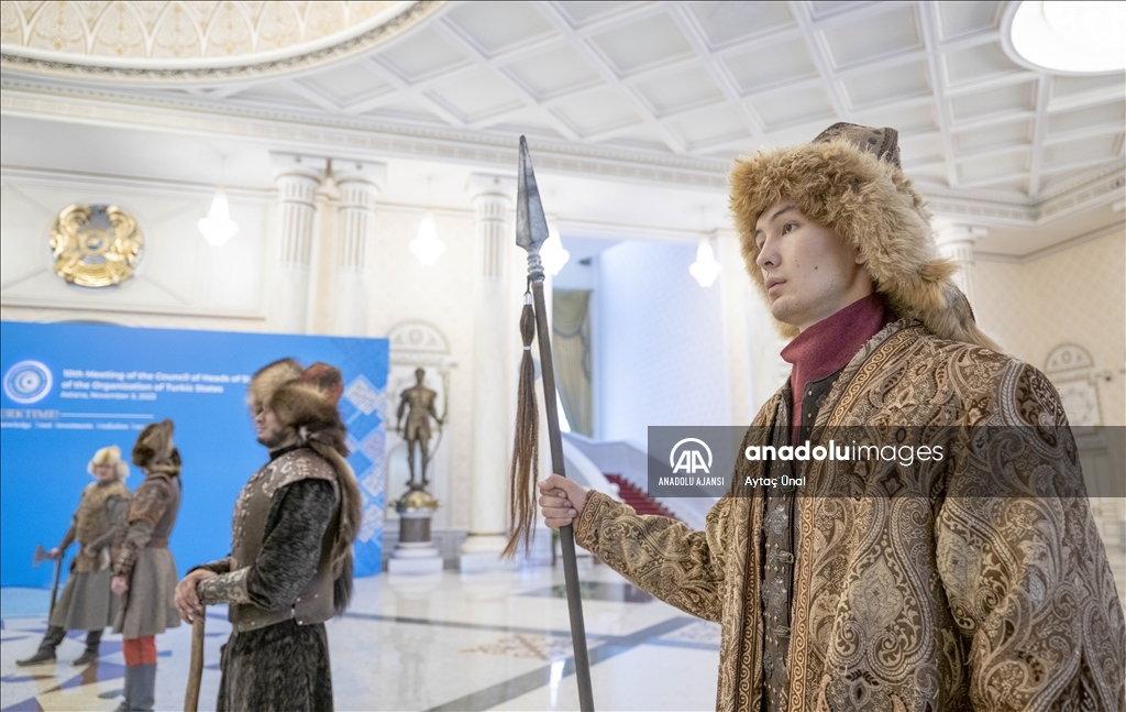 Türk Devletleri Teşkilatı (TDT) Devlet Başkanları Konseyi 10'uncu Zirvesi, Kazakistan'ın başkenti Astana'da başladı. Tören öncesinde, geleneksel Kazak kıyafetleri giymiş askerler salonda hazır bulundu. ( Aytaç Ünal - Anadolu Ajansı )Aytaç Ünal