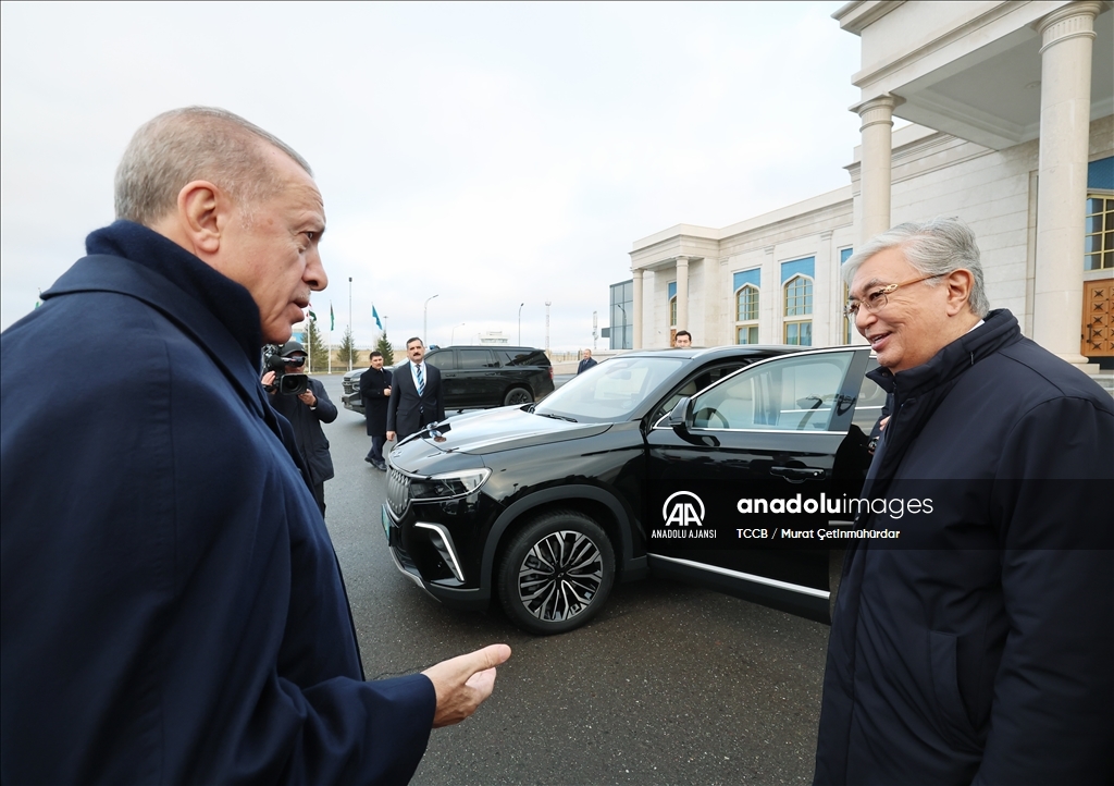 Cumhurbaşkanı Recep Tayyip Erdoğan, Türk Devletleri Teşkilatı (TDT) Devlet Başkanları Konseyi 10'uncu Zirvesi için bulunduğu Kazakistan'ın başkenti Astana'da, Kazakistan Cumhurbaşkanı Kasım Cömert Tokayev'e TOGG hediye etti. Kazakistan Cumhurbaşkanı Tokayev daha sonra Cumhurbaşkanı Erdoğan'ı uğurladı. ( TCCB / Murat Çetinmühürdar - Anadolu Ajansı )TCCB / Murat Çetinmühürdar