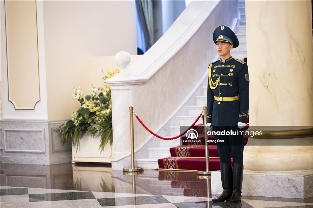 Türk Devletleri Teşkilatı (TDT) Devlet Başkanları Konseyi 10'uncu Zirvesi, Kazakistan'ın başkenti Astana'da başladı. Zirvenin gerçekleştiği Akorda Cumhurbaşkanlığı Sarayı'nda Kazak askerleri nöbet tuttu. ( Aytaç Ünal - Anadolu Ajansı )Aytaç Ünal