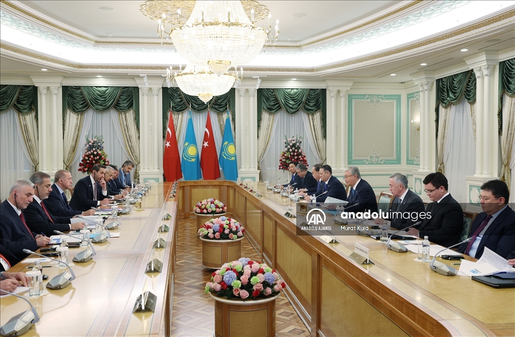 Cumhurbaşkanı Recep Tayyip Erdoğan, Türk Devletleri Teşkilatı (TDT) Devlet Başkanları Konseyi 10'uncu Zirvesi için bulunduğu Kazakistan'ın başkenti Astana'da Kazakistan Cumhurbaşkanı Kasım Cömert Tokayev ile görüştü. ( Murat Kula - Anadolu Ajansı )Murat Kula