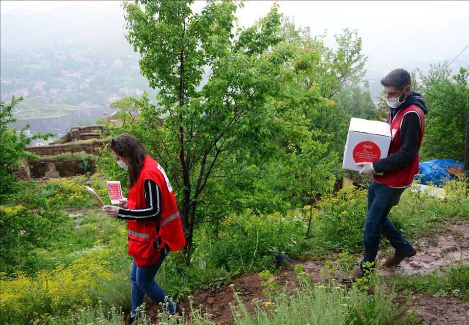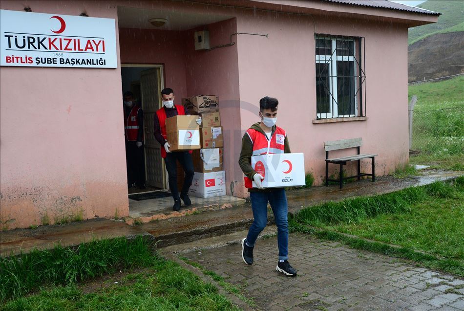 Türk Kızılay Bitlis Şubesi gönüllüleri, Ramazan Bayramı'nda da ihtiyaç sahibi ailelerin ve çocukların yüzünü güldürdü. Yeni tip koronavirüs (Kovid-19) tedbirleri kapsamında uygulanan sokağa çıkma kısıtlamasına rağmen çalışmalarını sürdüren Kızılay gönüllüleri, yardım kolilerini kentteki ihtiyaç sahibi ailelere ulaştırarak bayramlarını kutladı. ( Şener Toktaş - Anadolu Ajansı )Şener Toktaş