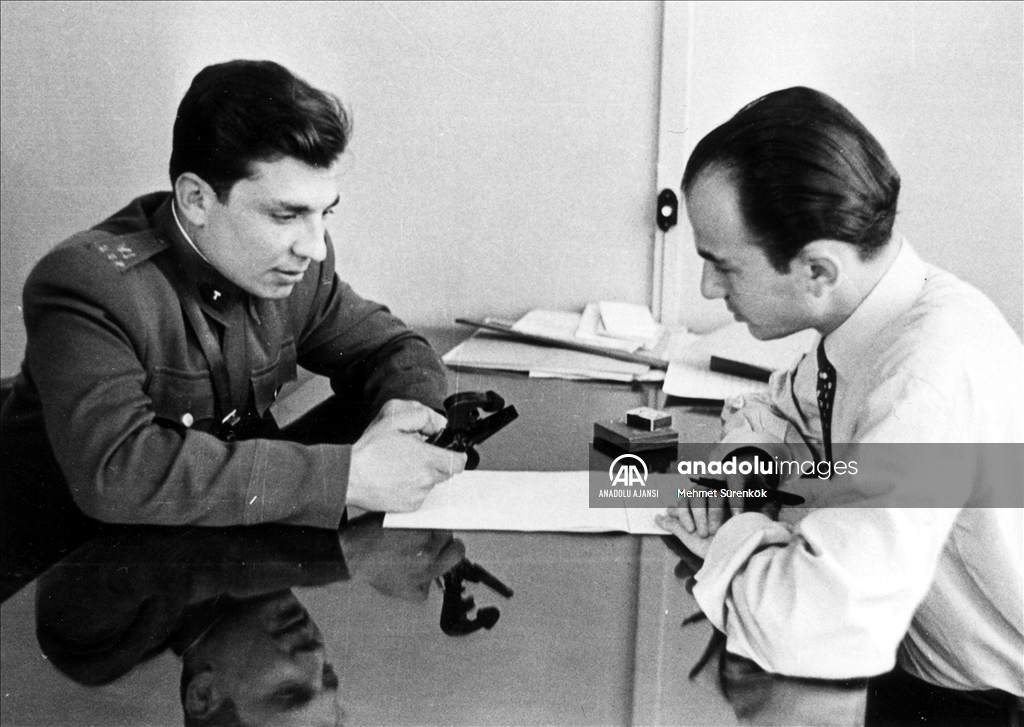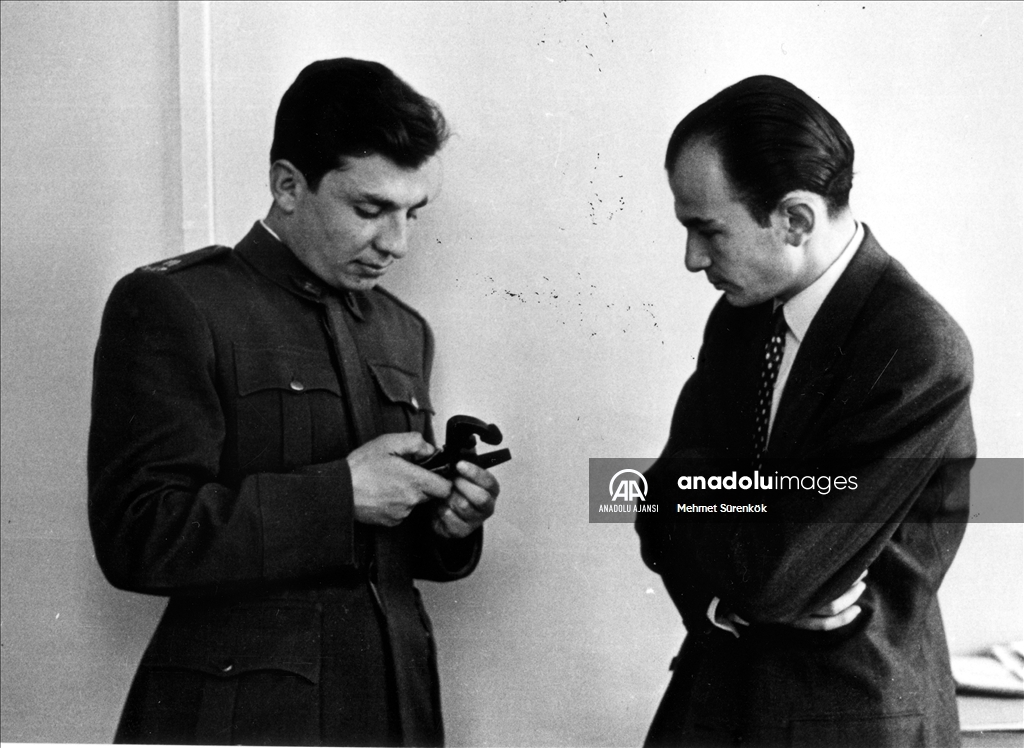 Türk müziğinde, unutulmaz sesi ve yorumuyla iz bırakan, "Sanat Güneşi" Zeki Müren'in vefatının üzerinden 26 yıl geçti. 1 Ocak 1957'de ses sanatçısı Müren (solda), Ankara Piyade Okulu'nda yedek subay öğrenci olarak bulunduğu sırada yapılan bir röportajda. (Arşiv) ( Mehmet Sürenkök - Anadolu Ajansı )Mehmet Sürenkök