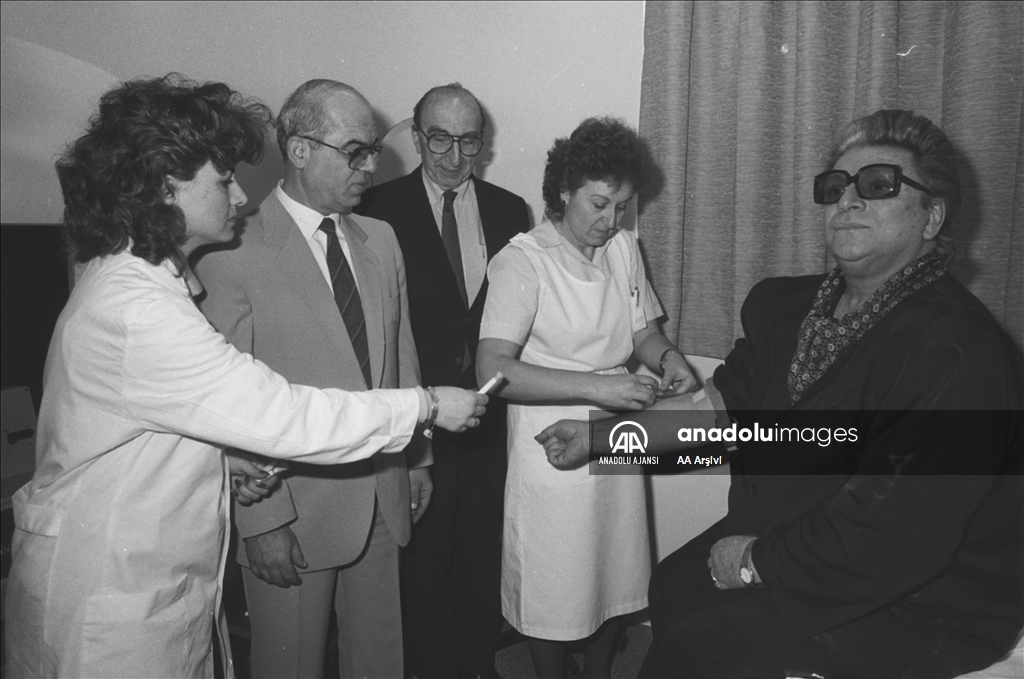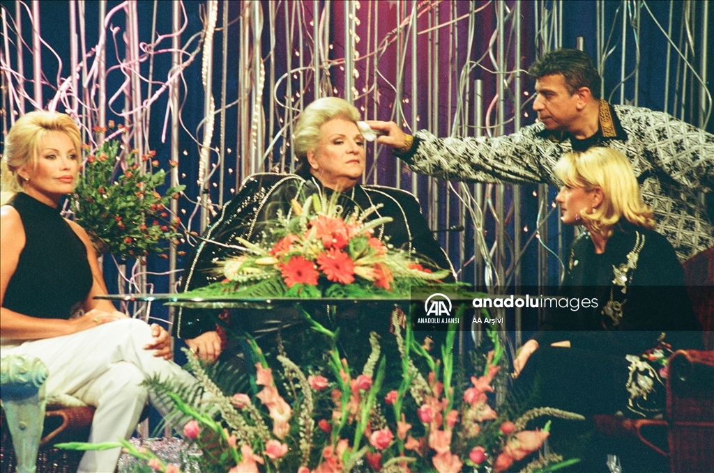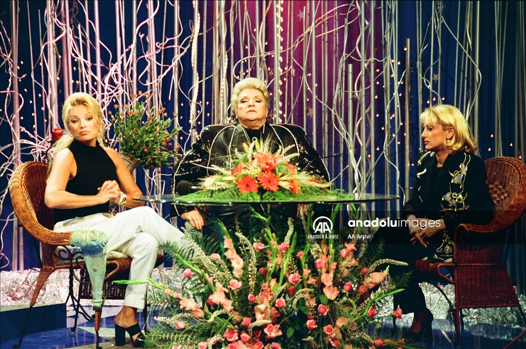 Türk müziğinde, unutulmaz sesi ve yorumuyla iz bırakan, "Sanat Güneşi" Zeki Müren'in vefatının üzerinden 26 yıl geçti. Zeki Müren (ortada), Muazzez Ersoy (sağda) ve Ajda Pekkan (solda) ile birlikte TRT İzmir stüdyolarında kendisi için hazırlanan törene katılmıştı. (Arşiv) ( AA Arşivi - Anadolu Ajansı )AA Arşivi
