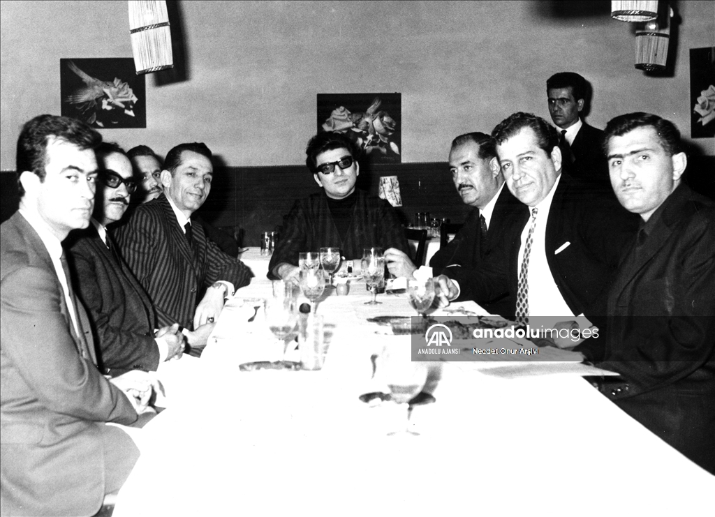 Türk müziğinde, unutulmaz sesi ve yorumuyla iz bırakan, "Sanat Güneşi" Zeki Müren'in vefatının üzerinden 26 yıl geçti. Şato Yazar Gazinosu sahibi Necdet Yazır'ın (sol 3) 1 Ocak 1966'da Zeki Müren'in programa başlaması nedeniyle verdiği davete Gazeteci Necdet Onur (solda), milletvekilleri Necip Mirkelamoğlu (sol 2), Mehmet Sait Reşa (sağ 3) ve Turizm ve Tanıtma Bakanlığı Müsteşarı Kemal Baytaş (sağ 2) katıldı. (Arşiv) ( Necdet Onur Arşivi - Anadolu Ajansı )Necdet Onur Arşivi