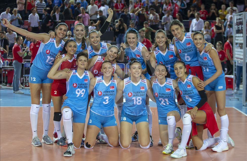 Türkiye, Polonya, Macaristan ve Slovakya'nın ortaklaşa düzenlediği 2019 Kadınlar Avrupa Voleybol Şampiyonasın A Grubu'ndaki dördüncü gün maçında Türkiye ile Bulgaristan karşılaştı. A Milli Kadın Voleybol Takımı, aldığı galibiyet sonrası sevinç yaşadı. ( Emin Sansar - Anadolu Ajansı )Emin Sansar