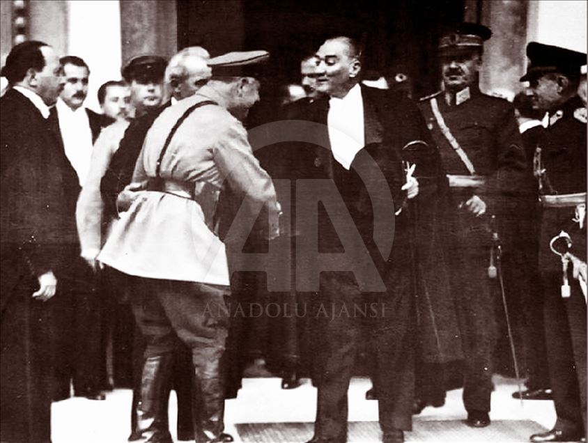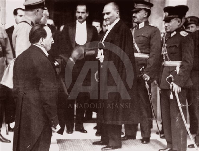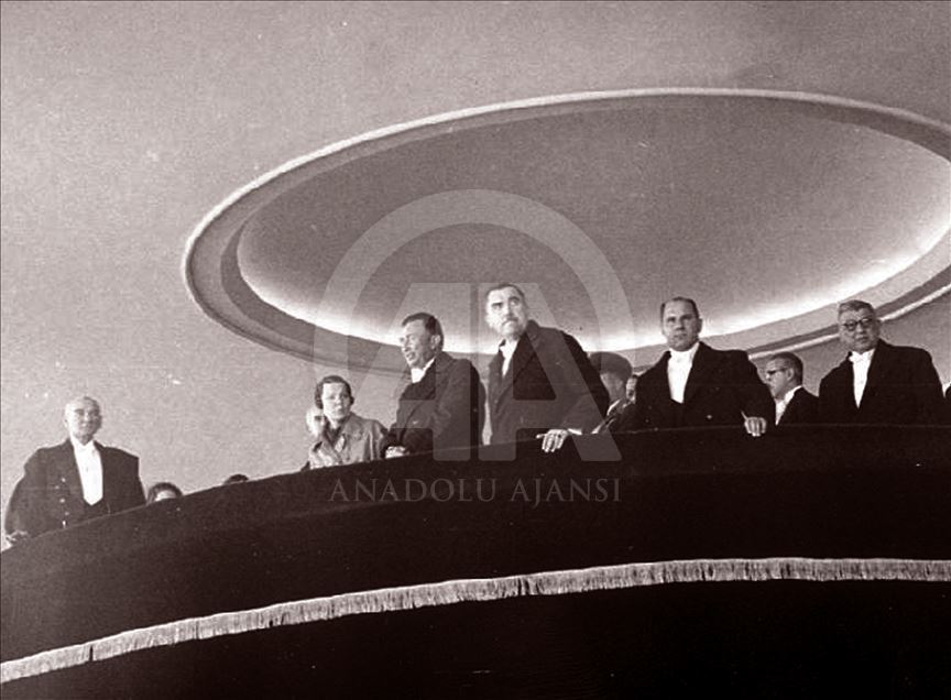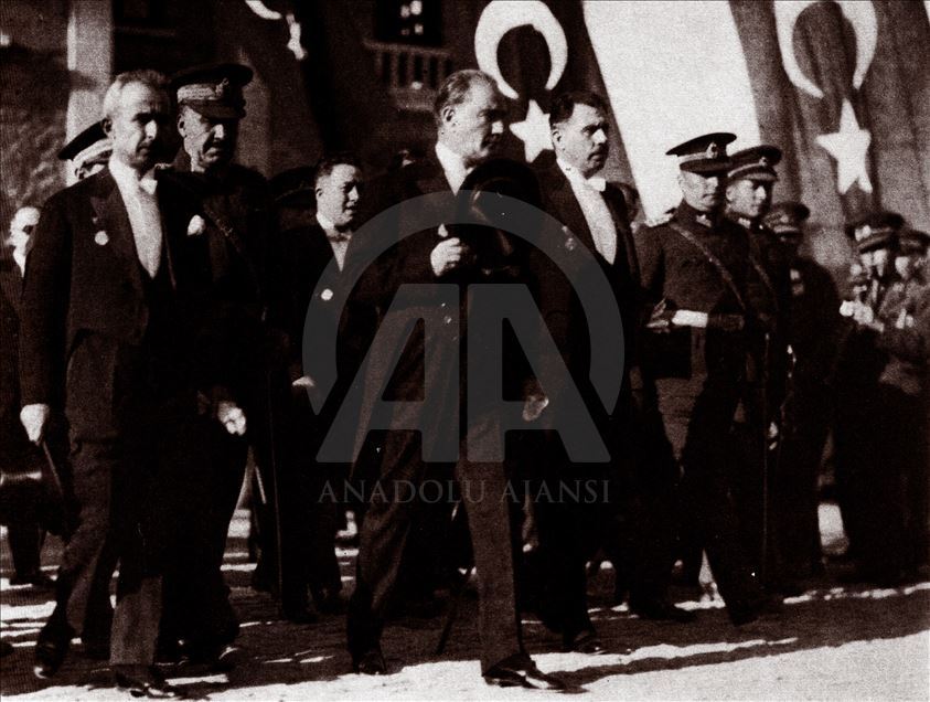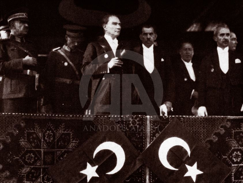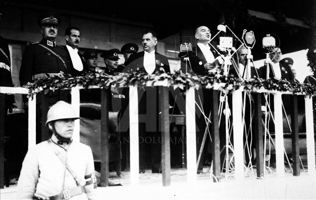 Türkiye'de "Egemenlik kayıtsız, şartsız milletindir." kuralını devlet yönetimine yerleştiren ve demokrasiyi taçlandıran cumhuriyetin ilanının üzerinden 96 yıl geçti. 29 Ekim 1929'da Mustafa Kemal Atatürk, 29 Ekim Cumhuriyet Bayramı kutlamalarında. (Arşiv)