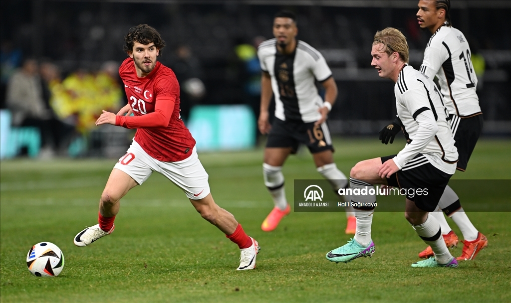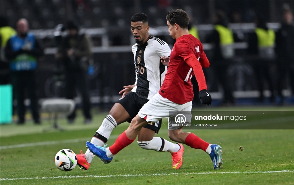 Almanya ile Türkiye, hazırlık maçında Berlin Olimpiyat Stadında karşılaştı. Bir pozisyonda Alman Milli Takım futbolcusu Benjamin Henrichs (solda) ile A Milli Takım futbolcusu Kenan Yıldız (sağda) mücadele etti. ( Halil Sağırkaya - Anadolu Ajansı )Halil Sağırkaya