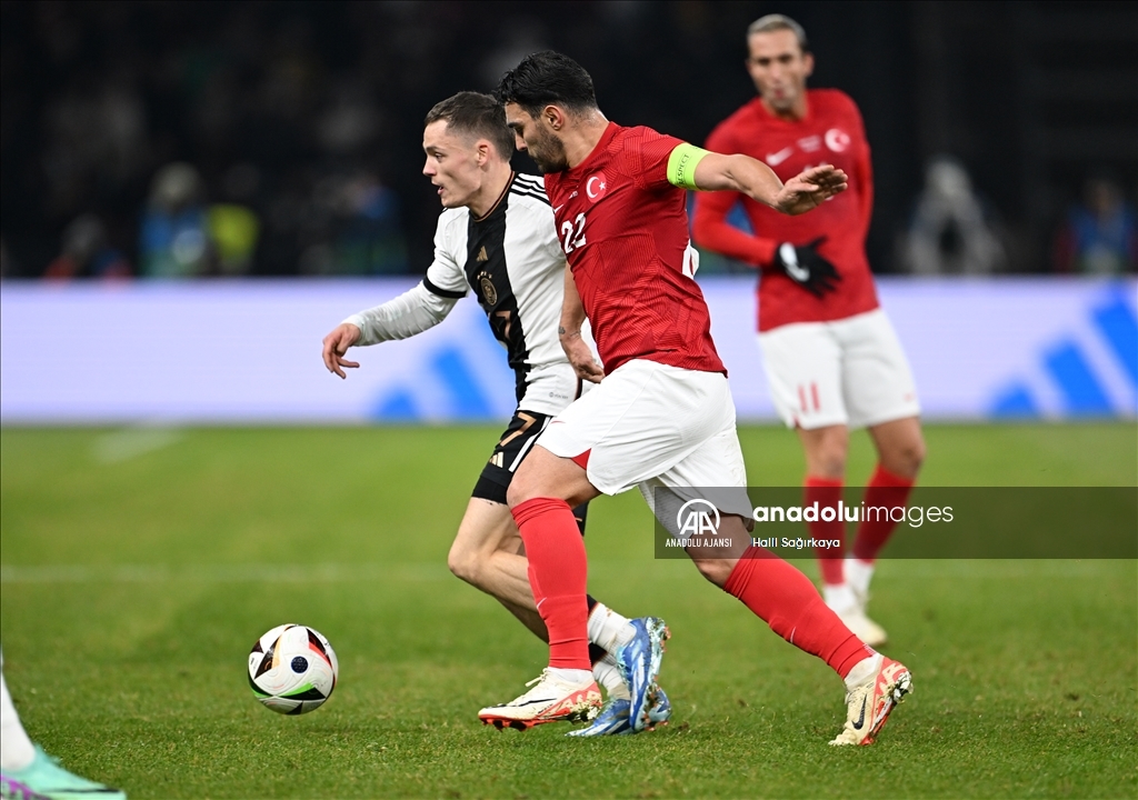 Almanya ile Türkiye, hazırlık maçında Berlin Olimpiyat Stadında karşılaştı. Bir pozisyonda Alman Milli Takım futbolcusu Florian Wirtz (solda) ile A Milli Takım futbolcusu Kaan Ayhan (sağda) mücadele etti. ( Halil Sağırkaya - Anadolu Ajansı )Halil Sağırkaya