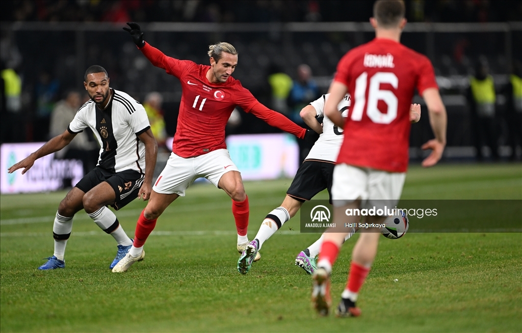 Almanya ile Türkiye, hazırlık maçında Berlin Olimpiyat Stadında karşılaştı. Bir pozisyonda Alman Milli Takım futbolcusu Jonathan Tah (solda) ile A Milli Takım futbolcusu Yusuf Yazıcı (sol 2) mücadele etti. ( Halil Sağırkaya - Anadolu Ajansı )Halil Sağırkaya