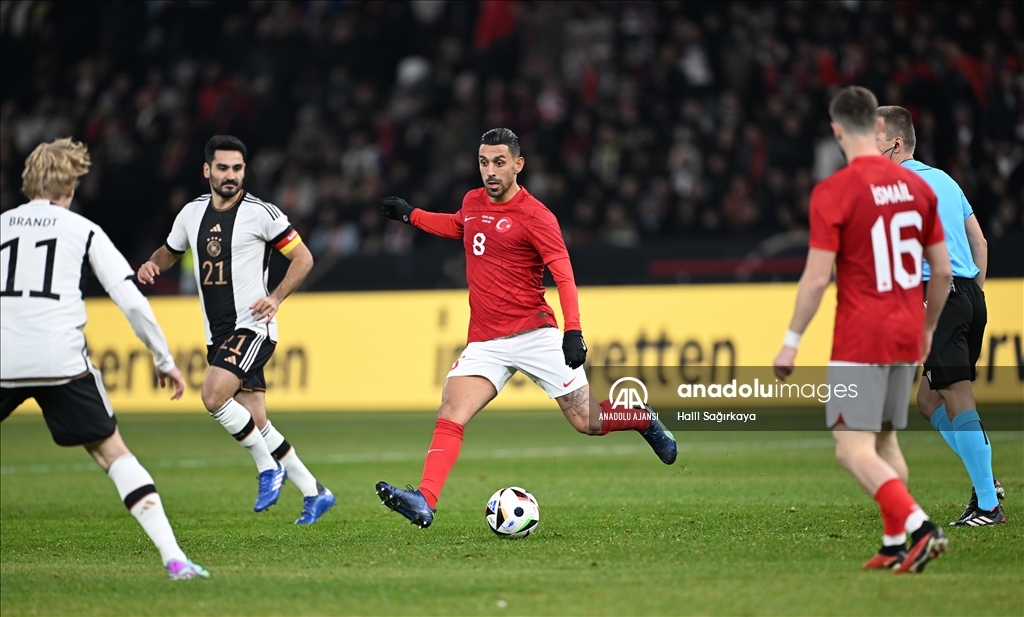 Almanya ile Türkiye, hazırlık maçında Berlin Olimpiyat Stadında karşılaştı. Bir pozisyonda Alman Milli Takım futbolcuları İlkay Gündoğan (sol 2) ve Julian Brandt (solda) ile A Milli Takım futbolcuları İrfan Can Kahveci (sağ 2) ve İsmail Yüksek (sağda) mücadele etti. ( Halil Sağırkaya - Anadolu Ajansı )Halil Sağırkaya