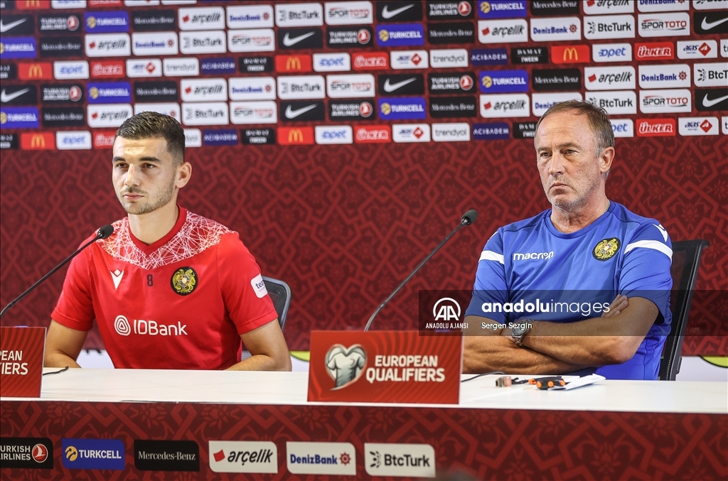 2024 Avrupa Şampiyonası Elemeleri (EURO 2024) Elemeleri D Grubu beşinci hafta maçında yarın A Milli Takım'la Eskişehir'de karşılaşacak Ermenistan Milli Takımı'nın teknik direktörü Oleksandr Petrakov (sağda) ve Ermenistanlı futbolcu Eduard Spertsyan (solda) açıklamalarda bulundu. ( Sergen Sezgin - Anadolu Ajansı )Sergen Sezgin