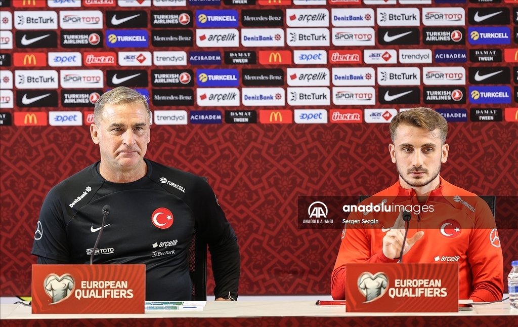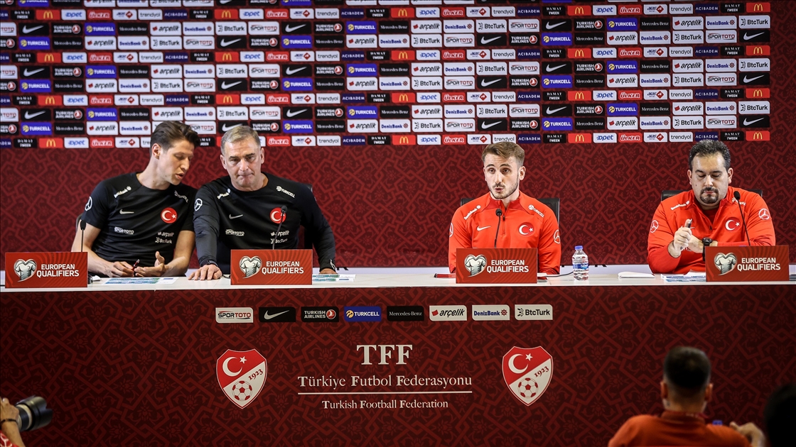2024 Avrupa Şampiyonası (EURO 2024) Elemeleri D Grubu beşinci hafta maçında yarın Ermenistan ile karşılaşacak A Milli Futbol Takım'nın teknik direktörü Stefan Kuntz (solda) ve futbolcu Kerem Aktürkoğlu (sağda) basın toplantısında konuştu. ( Sergen Sezgin - Anadolu Ajansı )Sergen Sezgin