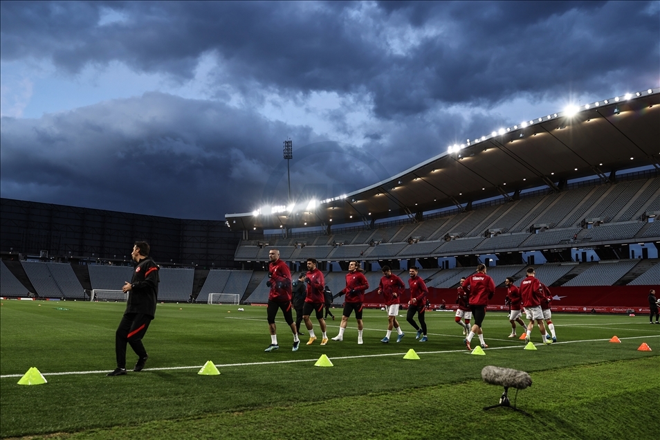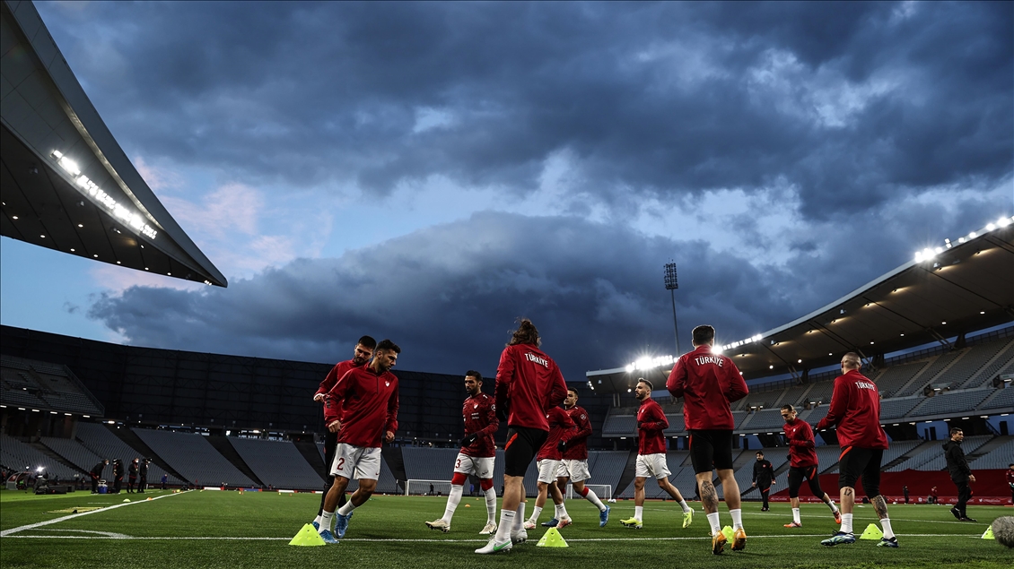 A Milli Futbol Takımı, 2022 FIFA Dünya Kupası Elemeleri G Grubu'nda Hollanda ile Atatürk Olimpiyat Stadı'nda karşılaşacak. Karşılaşma öncesi A Milli Takım oyuncuları ısınmak için sahaya çıktı. ( Onur Çoban - Anadolu Ajansı )Onur Çoban