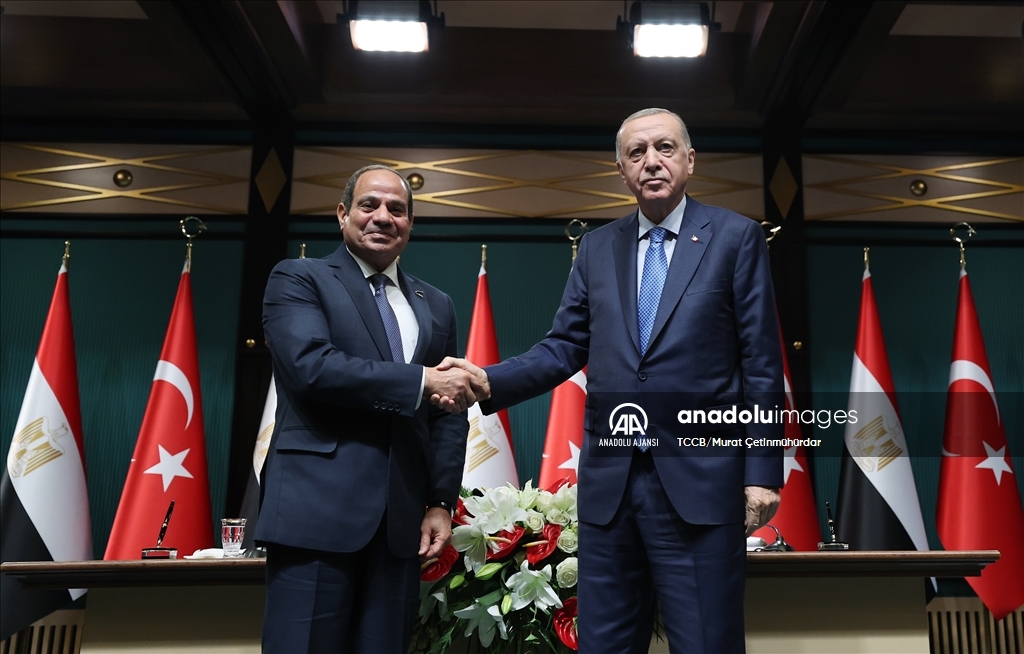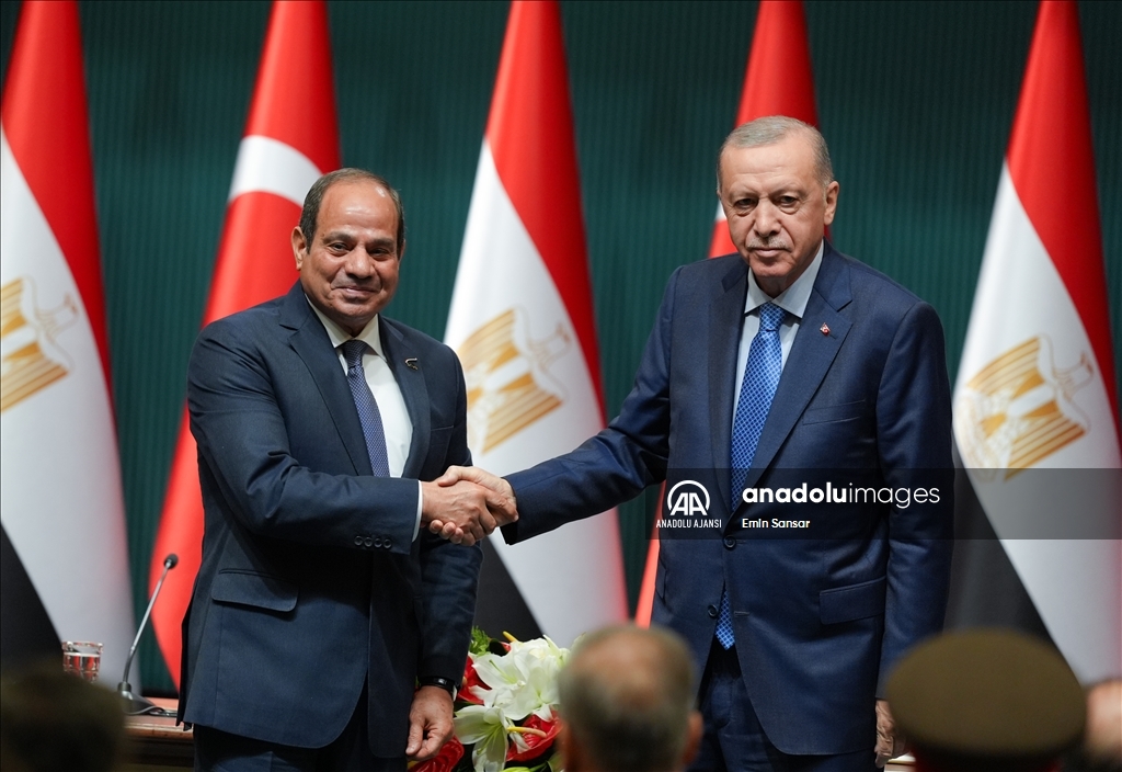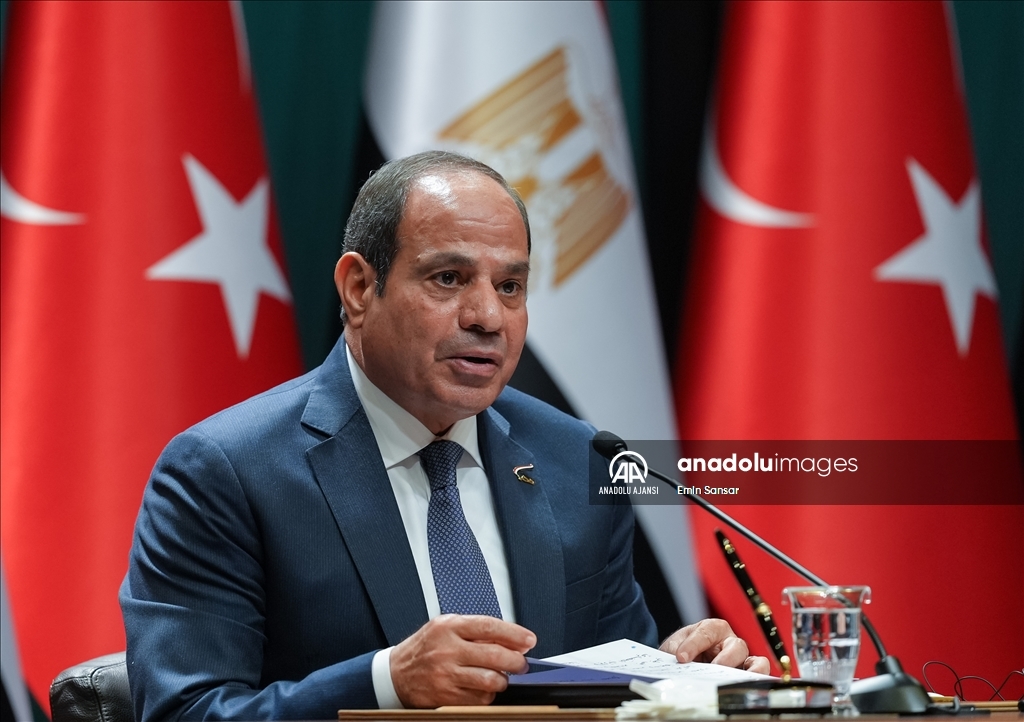Cumhurbaşkanı Recep Tayyip Erdoğan ile Mısır Cumhurbaşkanı Abdulfettah Es-Sisi, Cumhurbaşkanlığı Külliyesi'nde ortak basın toplantısı düzenledi. (Emin Sansar - Anadolu Ajansı)Emin Sansar