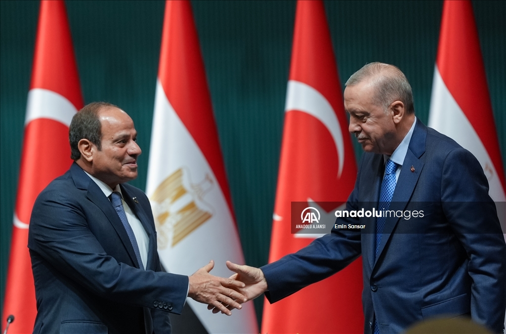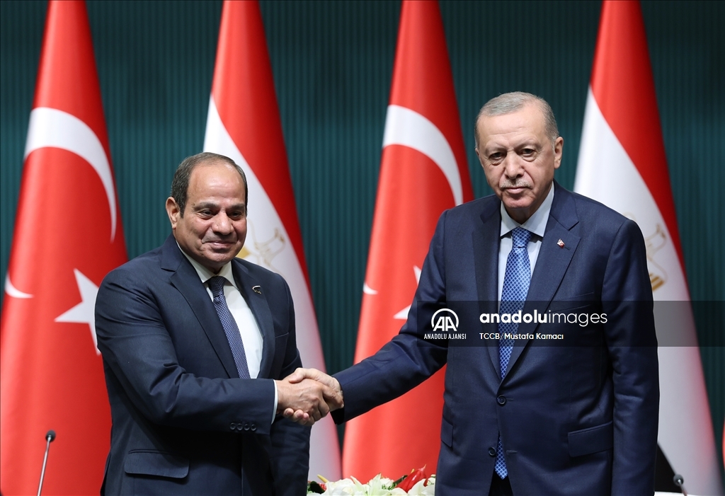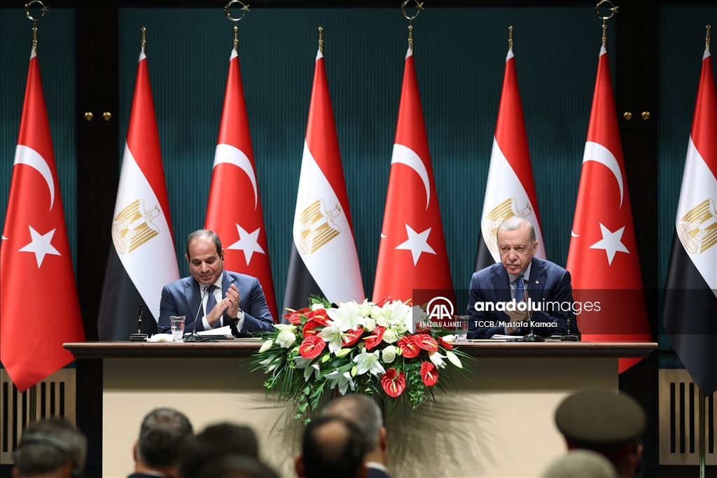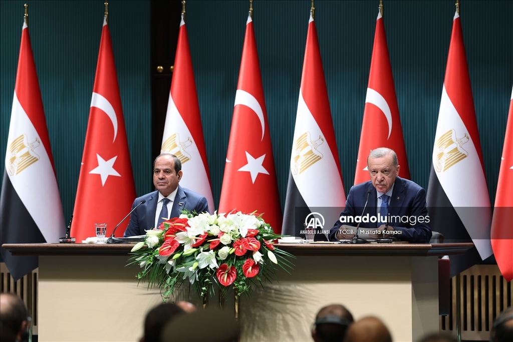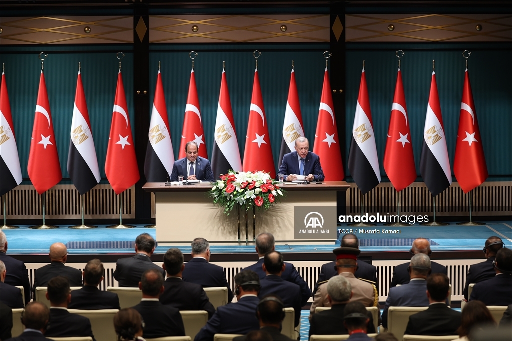 Cumhurbaşkanı Recep Tayyip Erdoğan ile Mısır Cumhurbaşkanı Abdulfettah Es-Sisi, Cumhurbaşkanlığı Külliyesi'nde ortak basın toplantısı düzenledi. (TCCB/Murat Çetinmühürdar - Anadolu Ajansı)TCCB/Murat Çetinmühürdar
