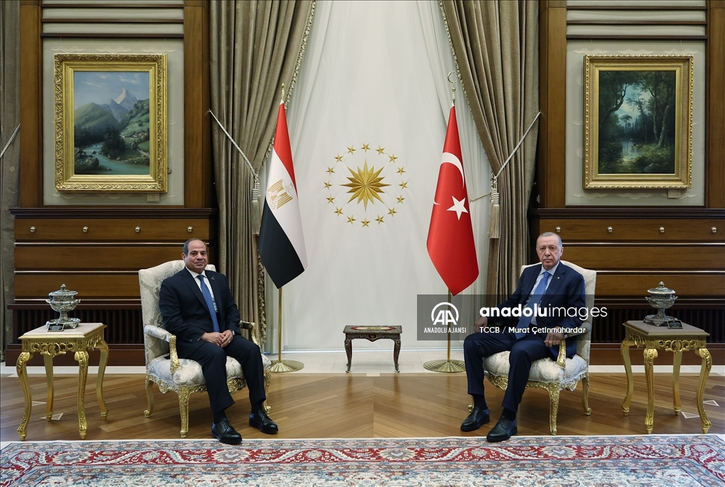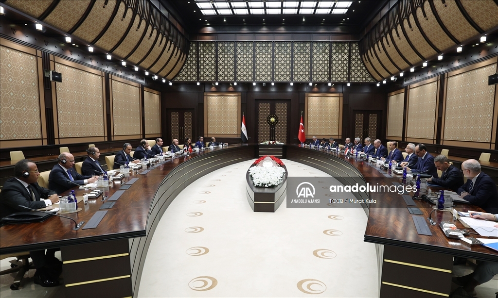 Cumhurbaşkanı Recep Tayyip Erdoğan, Mısır Cumhurbaşkanı Abdulfettah es-Sisi ile bir araya geldi. Erdoğan ve es-Sisi, Cumhurbaşkanlığı Külliyesi'nde Yüksek Düzeyli Stratejik İşbirliği Konseyi Toplantısı'na başkanlık etti. (TCCB/Murat Kula - Anadolu Ajansı)TCCB / Murat Kula