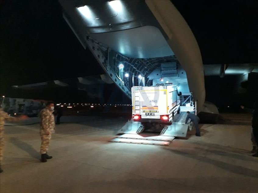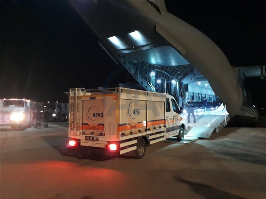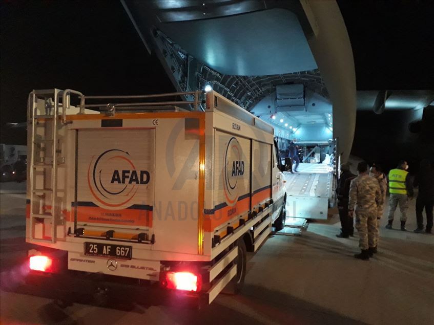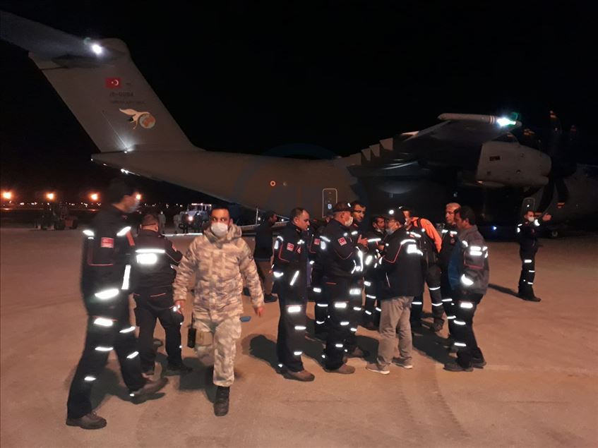 Personelleri taşıyan Türk Silahlı Kuvvetleri'ne ait uçakla Erzurum Hava Meydan Komutanlığı'ndan İzmir'e gitti. ( AFAD - Anadolu Ajansı )AFAD