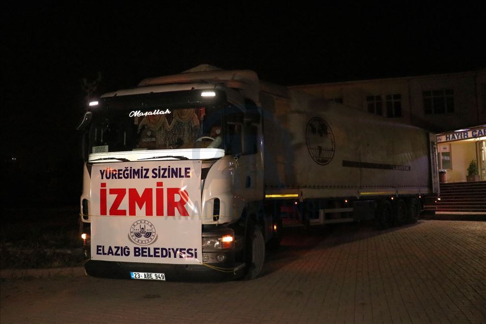 Elazığ Belediyesi, merkez üssü Ege Denizi'nin Seferihisar açıkları olan 6,6 büyüklüğünde deprem nedeniyle İzmir'e bir tır yardım malzemesi gönderdi. Elazığ Belediyesi Hayır Çarşısı görevlilerince hazırlanan, içerisinde yorgan, yatak, battaniye, gıda, giysi, çocuk bezi, dezenfektan ve maske gibi malzemeler bulunan yardım kolileri, tıra yüklenmesinin ardından depremzedelere ulaştırılmak üzere İzmir'e uğurlandı. ( İsmail Şen - Anadolu Ajansı )İsmail Şen