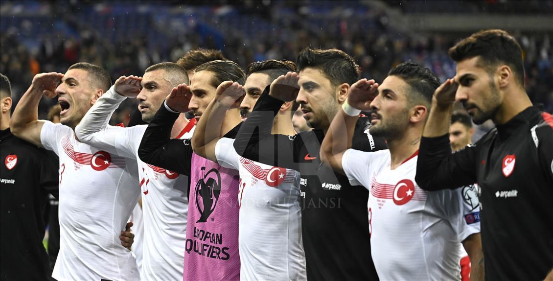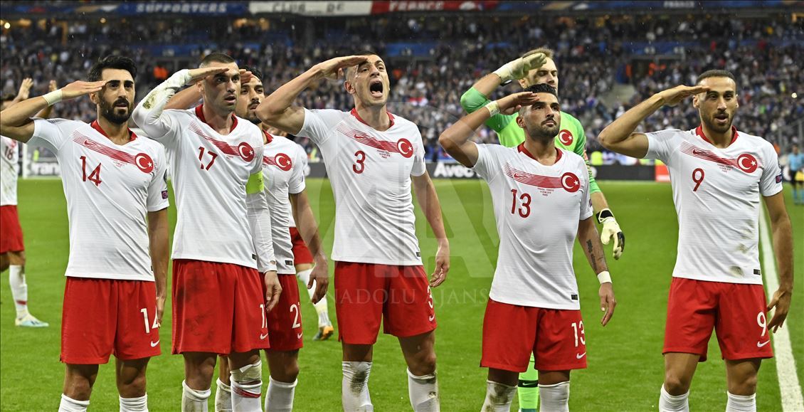 2020 Avrupa Futbol Şampiyonası Elemeleri H Grubu 8. maçında Fransa ile A Milli Futbol Takımı, Paris yakınlarındaki Stade de France’da karşılaştı. Berabere biten maç sonunda sevinç yaşayan milliler, asker selamı verdi. ( Mustafa Yalçın - Anadolu Ajansı )Mustafa Yalçın
