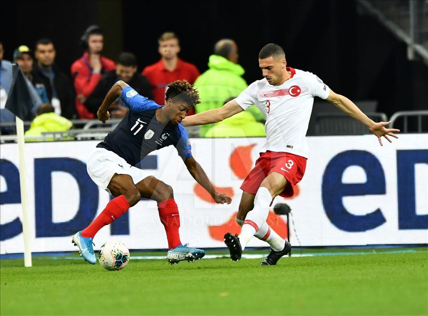 2020 Avrupa Futbol Şampiyonası Elemeleri H Grubu 8. maçında Fransa ile A Milli Futbol Takımı, Paris yakınlarındaki Stade de France’da karşılaştı. Bir pozisyonda milli futbolcu Zeki Çelik rakibi Coman ile mücadele etti. ( Mustafa Yalçın - Anadolu Ajansı )Mustafa Yalçın