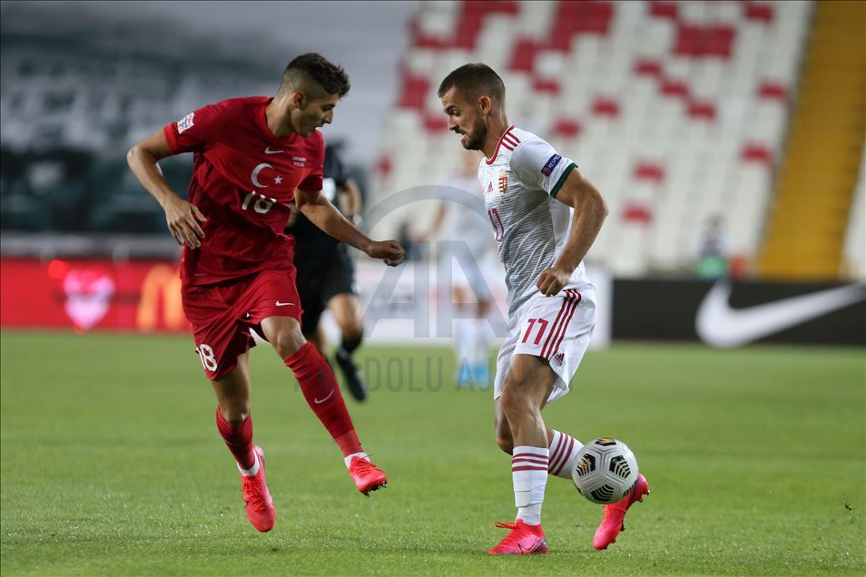 A Milli Futbol Takımı, 2020-2021 UEFA Uluslar B Ligi 3. Grup'taki ilk maçında Sivas Yeni 4 Eylül Stadı'nda Macaristan'la karşılaştı. Bir pozisyonda milli oyuncu Umut Meraş (13), Macaristan takımı futbolcusu Siger (sağda) ile mücadele etti. ( Sercan Küçükşahin - Anadolu Ajansı )Sercan Küçükşahin