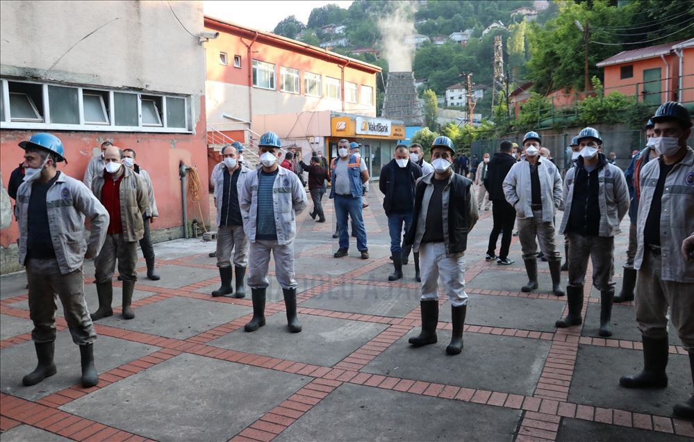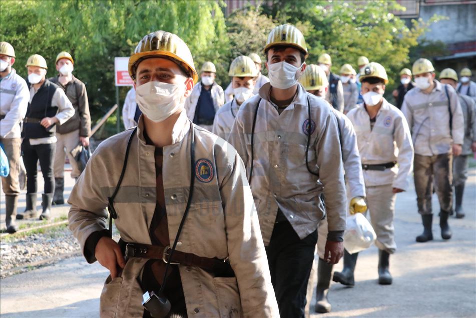 Türkiye Taşkömürü Kurumu (TTK) yeni tip koronavirüs (Kovid-19) tedbirleri kapsamında durdurduğu üretim amaçlı çalışmaya yeniden başladı. Tüm dünyayı etkisi altına alan Kovid-19- salgını nedeniyle TTK'nin 30 Mart'ta ara verdiği üretime, 1 Haziran itibarıyla yeniden başlandı. TTK Üzülmez Müesssese Müdürlüğüne bağlı madenci ocağında çalışan işçilere, tertip almalarının ardından görev dağılımı yapıldı. Daha sonra iş yeri hekimlerince ateşleri ölçülen ve sosyal mesafe konusunda bilgi verilen işçilere, kurumca maske dağıtıldı.