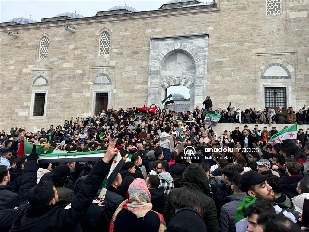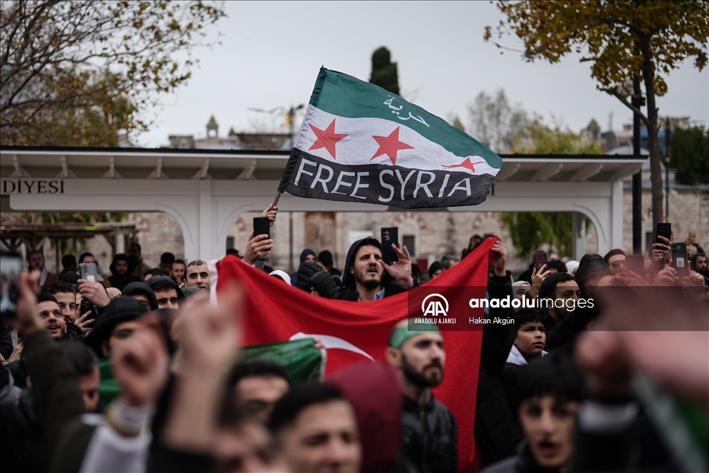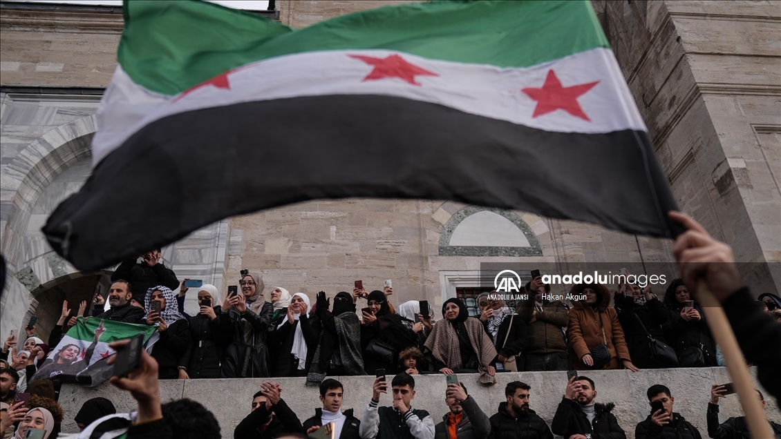 İstanbul'da yaşayan Suriyeliler, ülkelerinde Esed rejiminin devrilmesini kutladı. Kentte yaşayan Suriyeliler, sabah namazının ardından Fatih Camisi'nin avlusunda toplandı.. ( Hakan Akgün - Anadolu Ajansı )Hakan Akgün