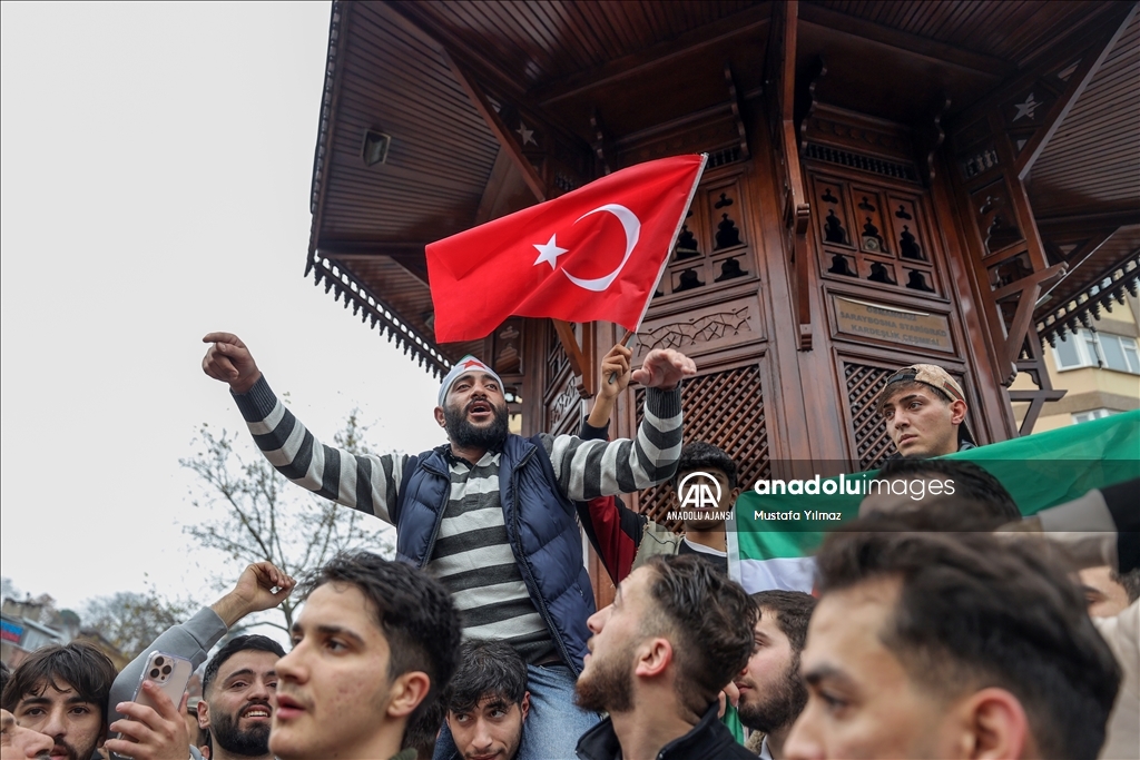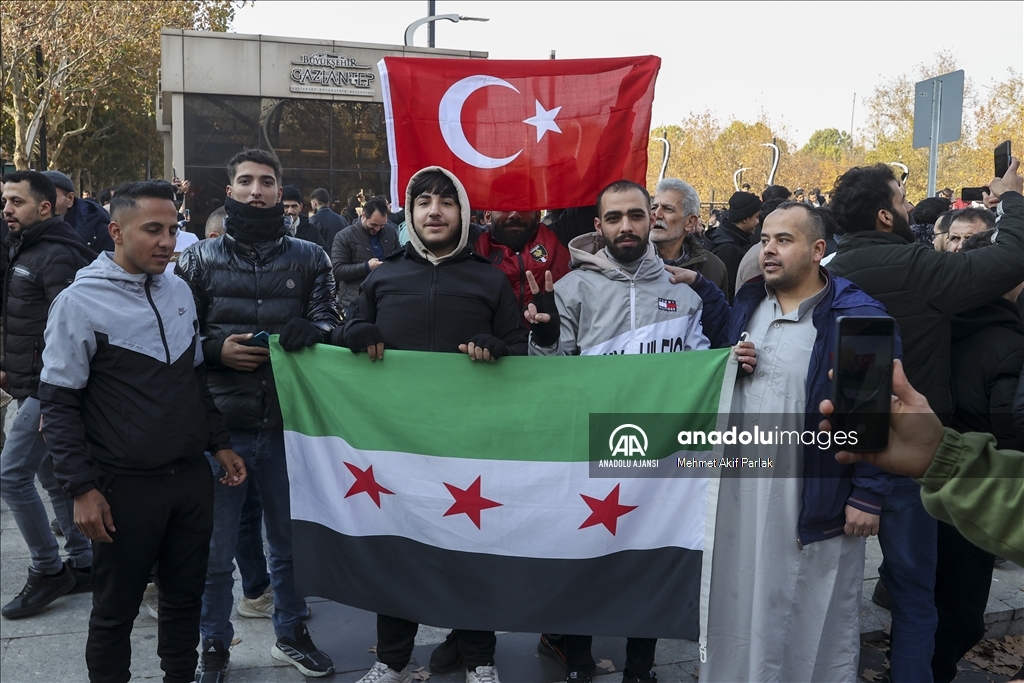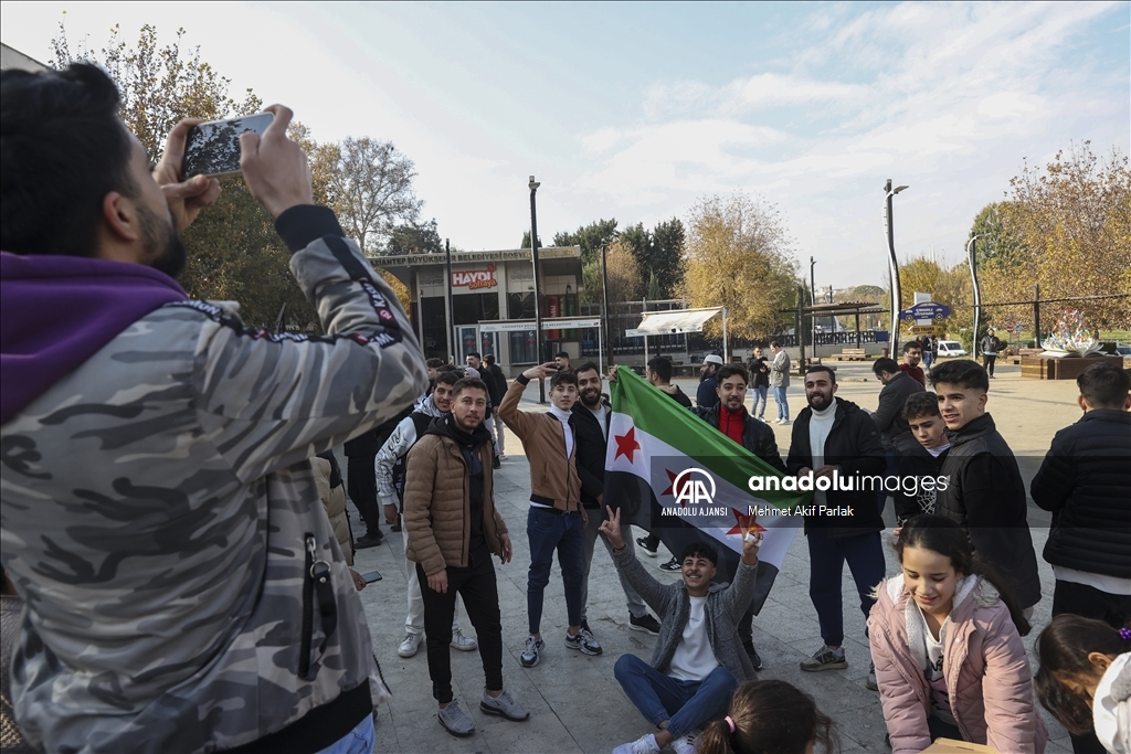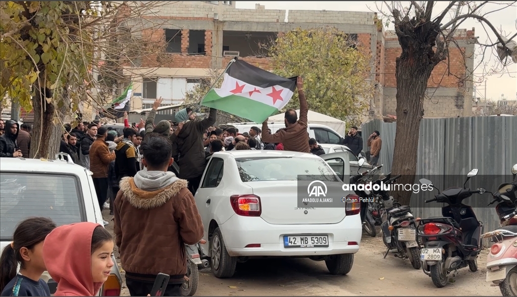 Suriye'deki 61 yıllık Baas rejiminin devrilmesinin ardından Gaziantep'te yaşayan Suriyeliler, 15 Temmuz Demokrasi Meydanı yakınlarında bir araya gelerek rejimin çöküşünü kutladı. ( Mehmet Akif Parlak - Anadolu Ajansı )Mehmet Akif Parlak