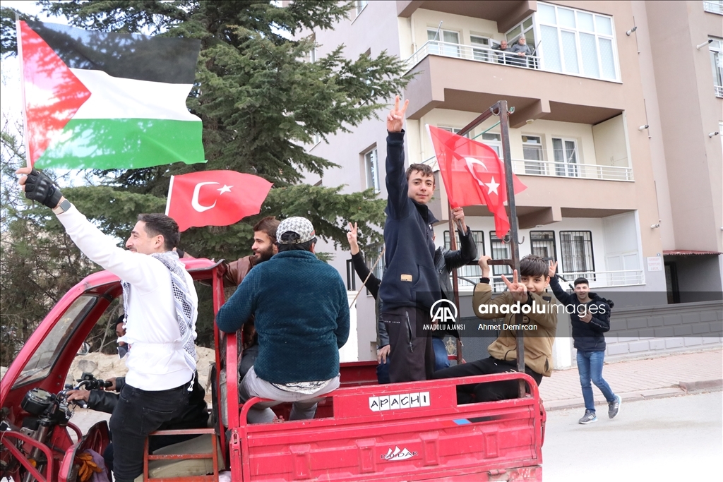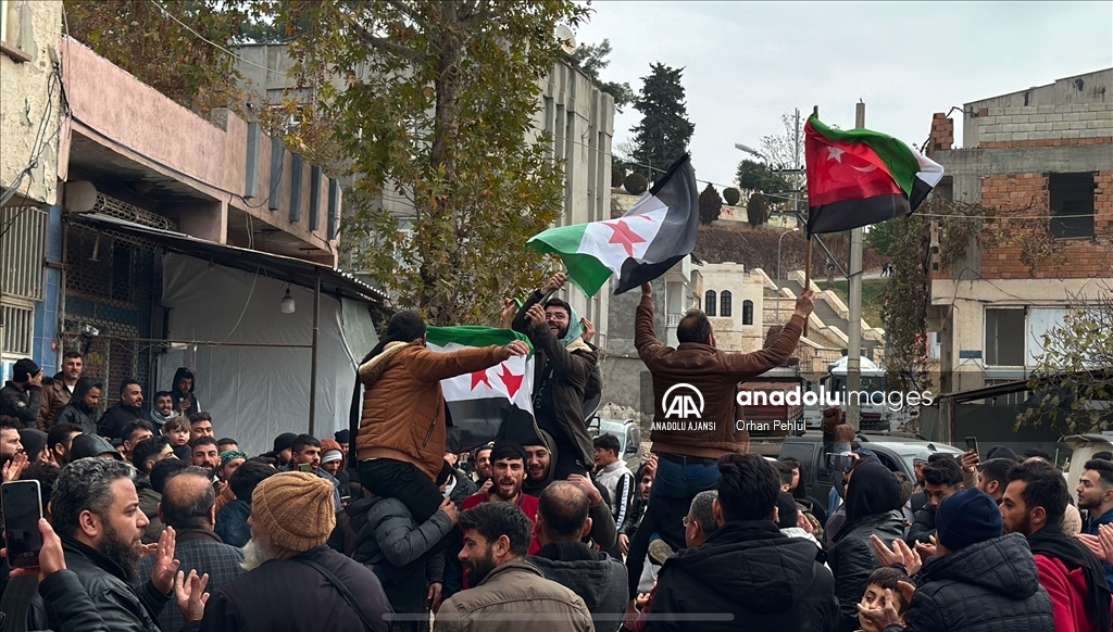 Suriye'deki 61 yıllık Baas rejiminin devrilmesinin ardından Adıyaman'da yaşayan Suriyeliler, Ulucami Mahallesi'nde toplanarak kutlama yaptı. ( Orhan Pehlül - Anadolu Ajansı )Orhan Pehlül