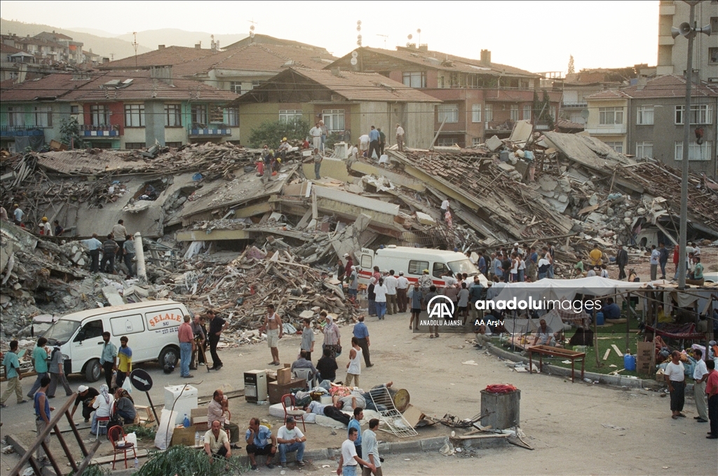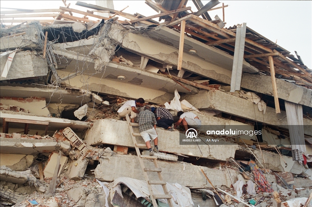 Kocaeli Gölcük'te 17 Ağustos 1999'da meydana gelen 7,4 büyüklüğündeki depremde 17 bin 840 kişi öldü, 43 bin 953 kişi yaralandı.Yaklaşık 45 saniye süren Gölcük depremi, 6 Şubat 2023'te meydana gelen Kahramanmaraş merkezli 7,8 büyüklüğündeki depremden sonra Türkiye'nin deprem geçmişinde "en uzun deprem" olarak biliniyor. 18 Ağustos 1999'da arama kurtarma çalışmaları devam etmişti. (Arşiv) ( AA Arşiv - Anadolu Ajansı )AA Arşiv