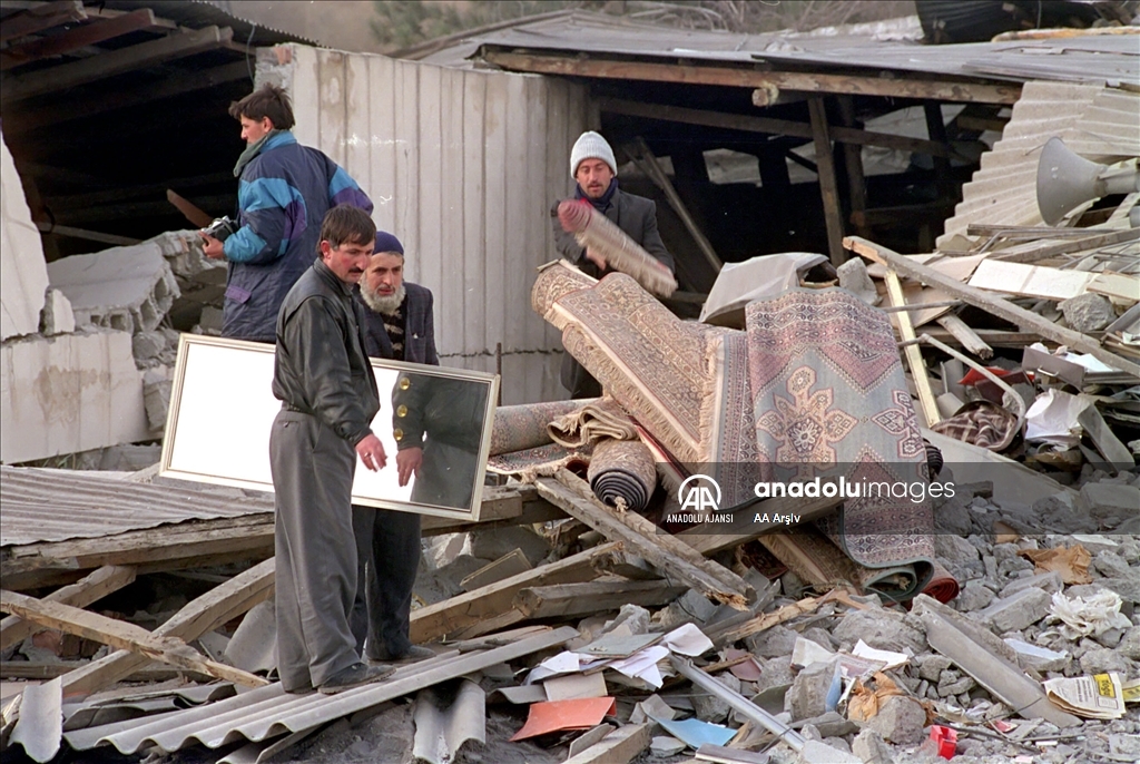 Yaşanan depremin ardından 14 Mart 1992'de vatandaşlar enkazdan eşyalarını çıkarmaya çalışmıştı. (Arşiv) ( AA Arşiv - Anadolu Ajansı )AA Arşiv