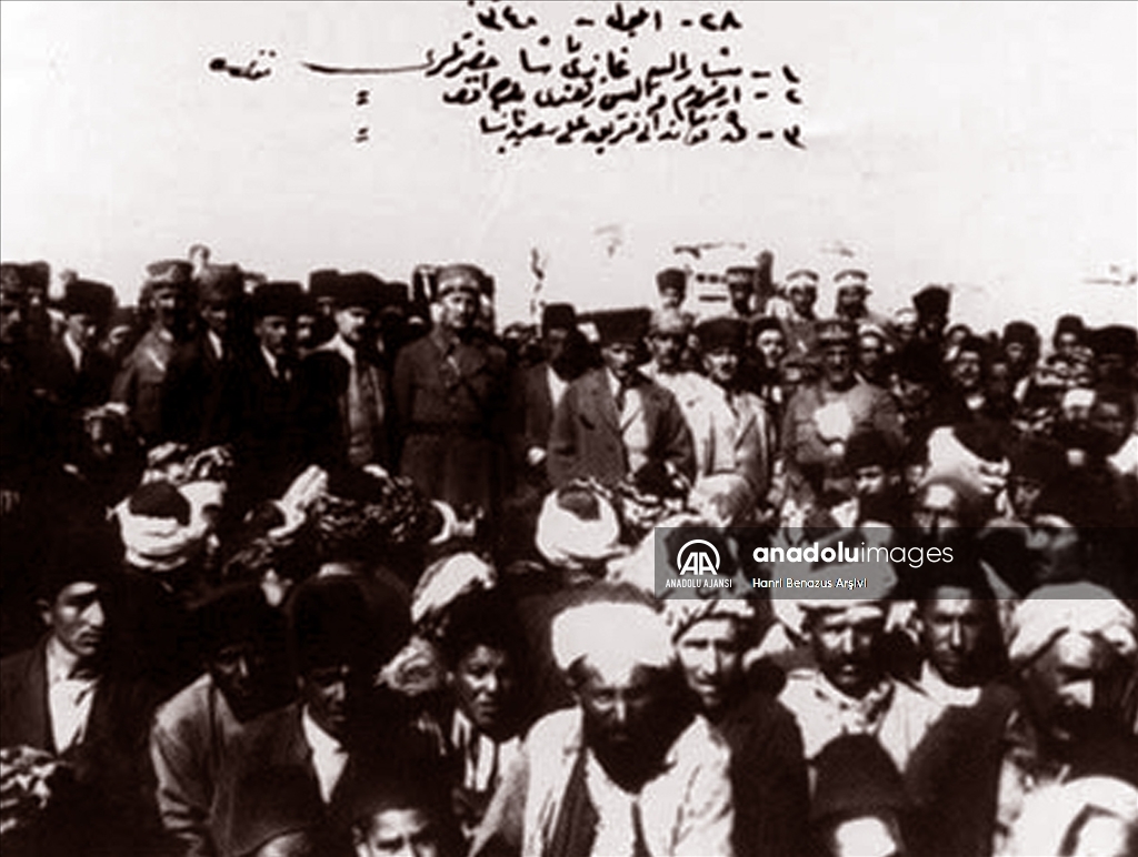 Mustafa Kemal Atatürk, Erzurum'un Hasankale ilçesinde depremzedeler ile birlikte. (Arşiv) ( Hanri Benazus Arşivi - Anadolu Ajansı )Hanri Benazus Arşivi