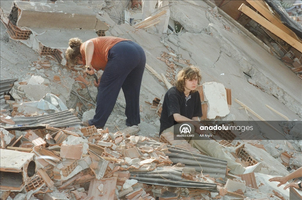 Kocaeli Gölcük'te 17 Ağustos 1999'da meydana gelen 7,4 büyüklüğündeki depremde 17 bin 840 kişi öldü, 43 bin 953 kişi yaralandı.Yaklaşık 45 saniye süren Gölcük depremi, 6 Şubat 2023'te meydana gelen Kahramanmaraş merkezli 7,8 büyüklüğündeki depremden sonra Türkiye'nin deprem geçmişinde "en uzun deprem" olarak biliniyor. 18 Ağustos 1999'da vatandaşlar kendi imkanlarıyla arama kurtarma çalışmalarını devam ettirmişti. (Arşiv) ( AA Arşiv - Anadolu Ajansı )AA Arşiv